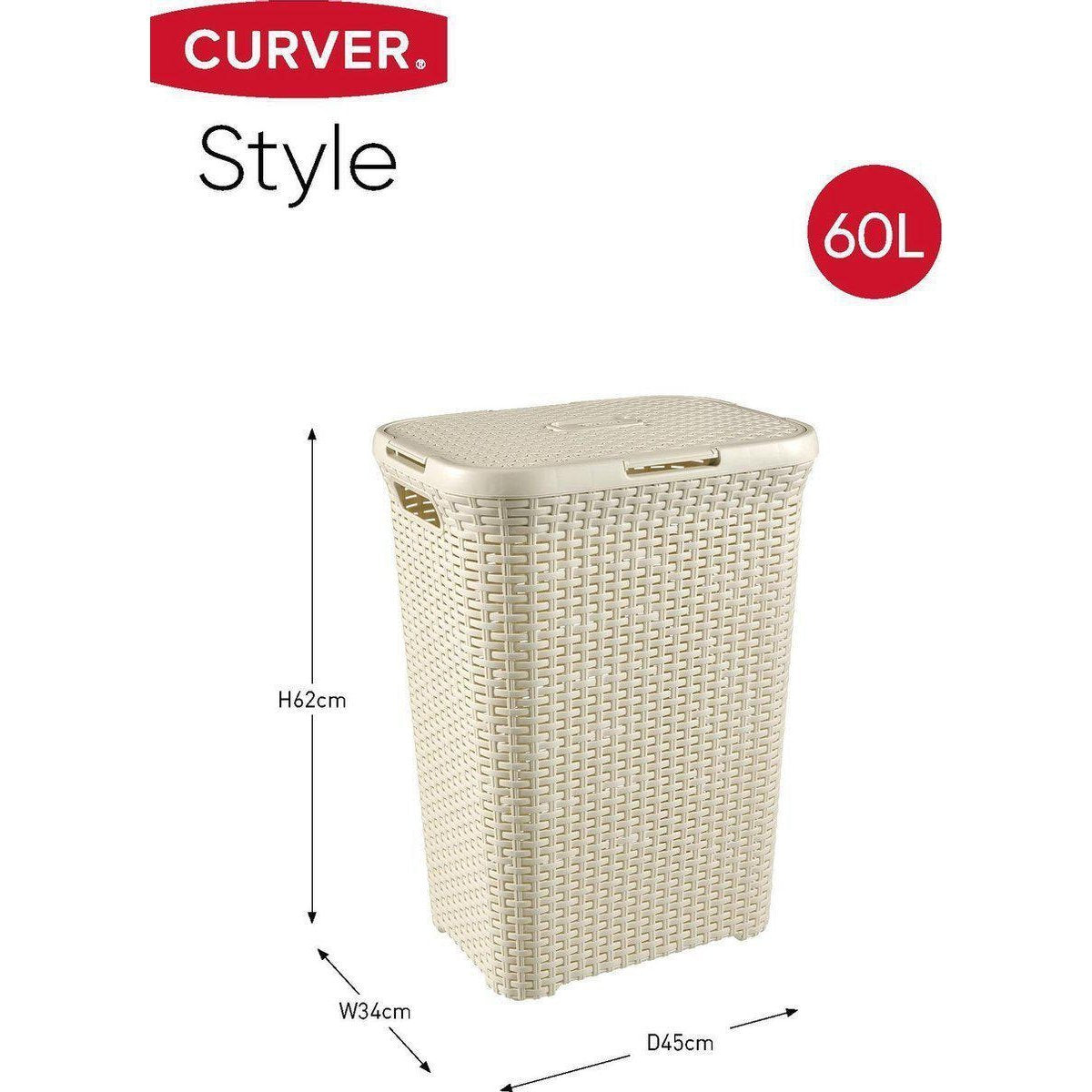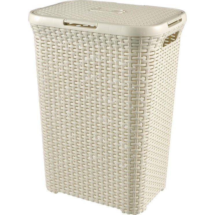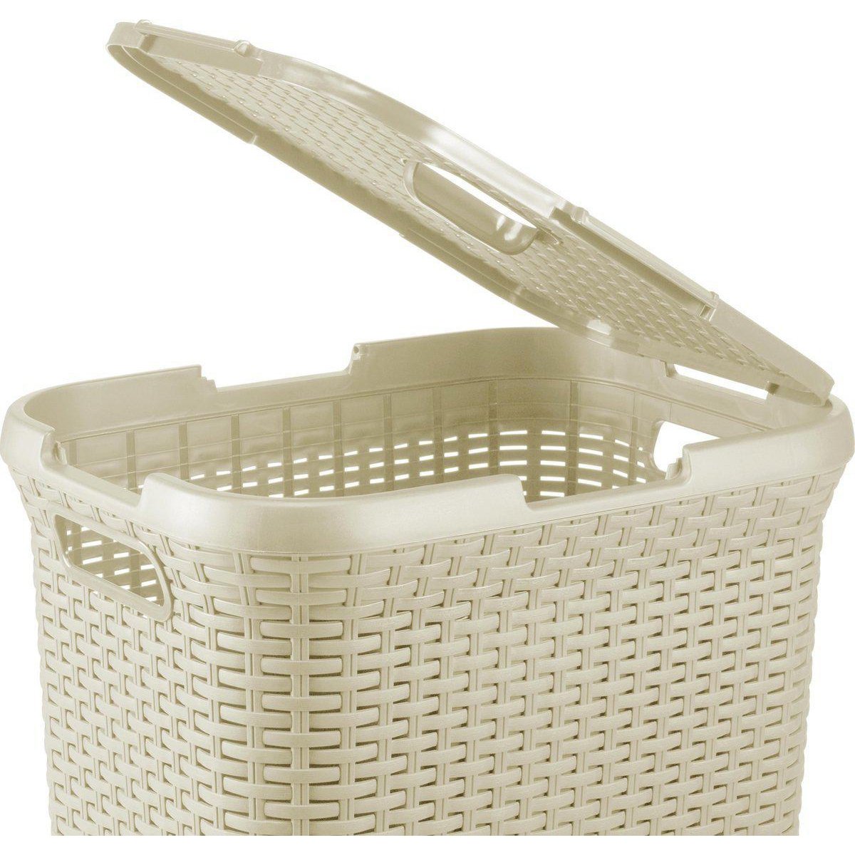 Deze wasmand van de Curver Style serie heeft de look en uitstraling van riet of rotan, maar heeft de voordelen van kunststof. Door het vlechtwerk kan de box van 60 liter optimaal luchten. Een ander voordeel van deze wasbox is dat het scharnierpunt zowel aan de korte als aan de lange kant gemonteerd kan worden. Daarnaast kan de klep er ook los opgelegd worden. De deksel is ook voorzien van een speciale greep om hem gemakkelijk te openen.