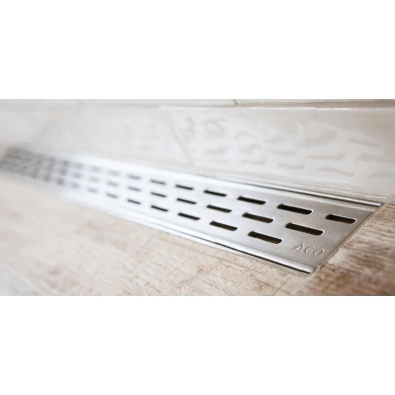 Aco C rooster voor douchegoot, vorm roosterperforatie sleuf, roosterplaat grijs, vorm rooster rechthoekig, kwaliteitsklasse RVS 304 (1.4301), dikte rooster 2mm.