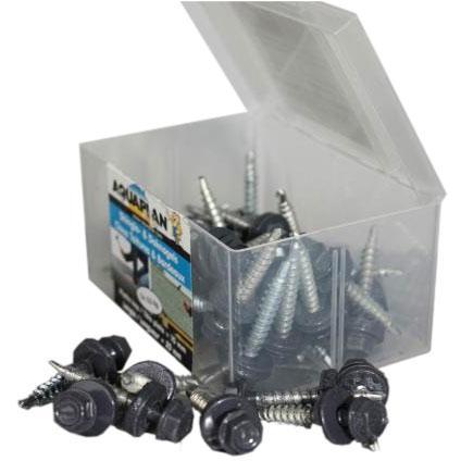 Deze antraciet zelftappende schroef met epdm dichting zit in een doos met 40 schroeven en is goed voor de montage van ongeveer 5 platen Aqua-Pan, inclusief de windveren en nok.