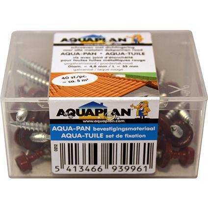 Deze rode zelftappende schroef met epdm dichting zit in een doos met 40 schroeven en is goed voor de montage van ongeveer 5 platen Aqua-Pan, inclusief de windveren en nok.