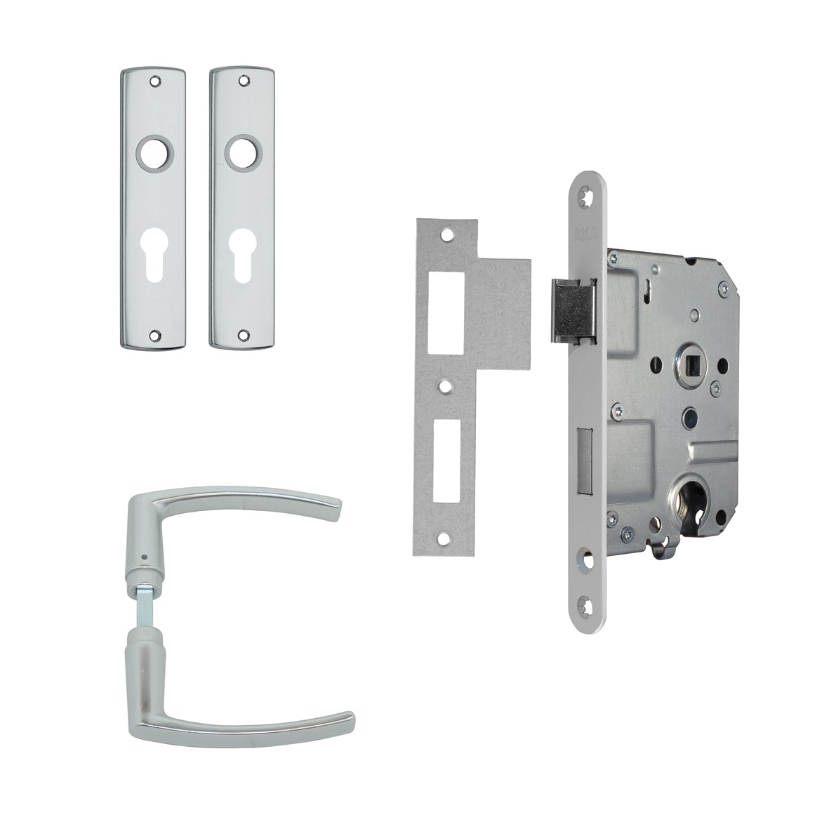Dit universele dag-nachtslot van Axa heeft cilindergat en Curve schilden. Hij is geschikt voor binnendeuren en voorzien van een witte voorplaat met cilindergat. Hij heeft een snel omkeerbare messing vernikkelde dagschoot en een solide krukstiftmechanisme. Het slot wordt geleverd met bijpassende binnendeurschilden en inclusief sluitplaat en montagemateriaal.