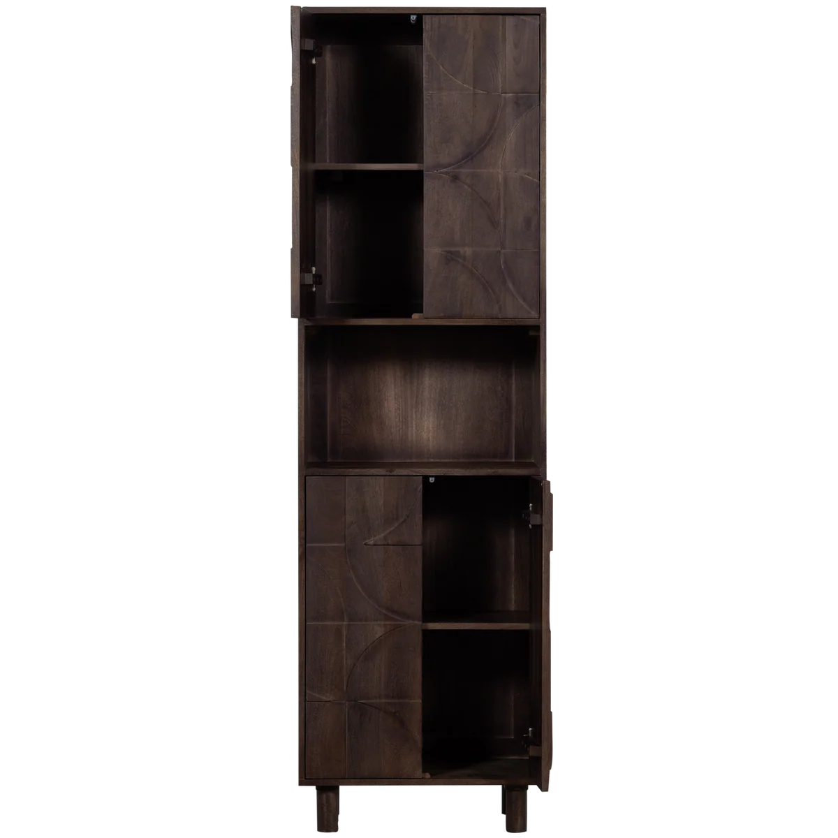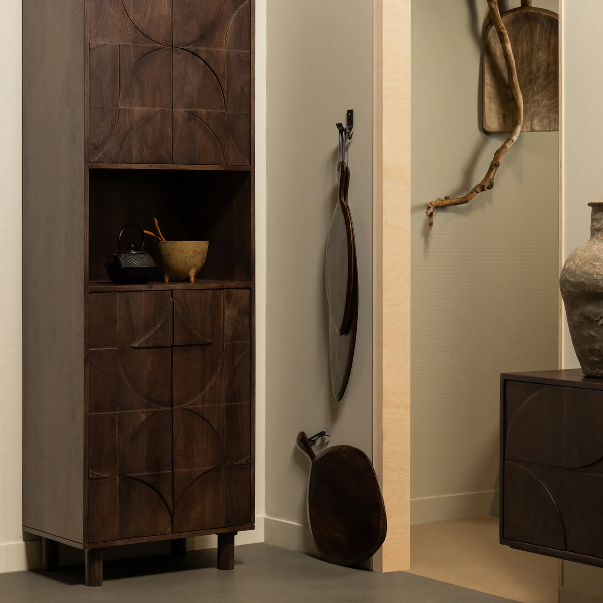 BePureHome opbergkast Draw met vier deuren en een open vak, uitgevoerd in warm mangohout met een rijke walnoottint, brengt direct sfeer en verfijning in je interieur. De natuurlijke houtnerf en het elegante ontwerp zorgen voor een luxe uitstraling waarin je persoonlijke stijl echt naar voren komt. Je creëert een rustige, georganiseerde basis die perfect aansluit bij jouw woonwensen.