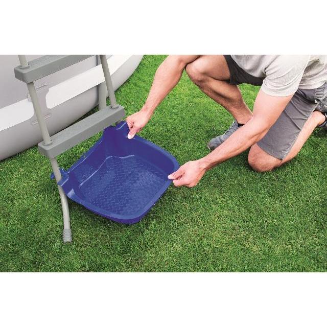 Voorkom vuil en rommel in het zwembad door dit praktische voetenbad met anti-slipbodem. Het kan bevestigd worden aan de zwembadtrap, zodat u met schone voeten het bad ingaat. Past op de meeste zwembadtrappen voor bovengrondse zwembaden. Watercapaciteit: 9 l. Afmeting: 41x41x15 cm.