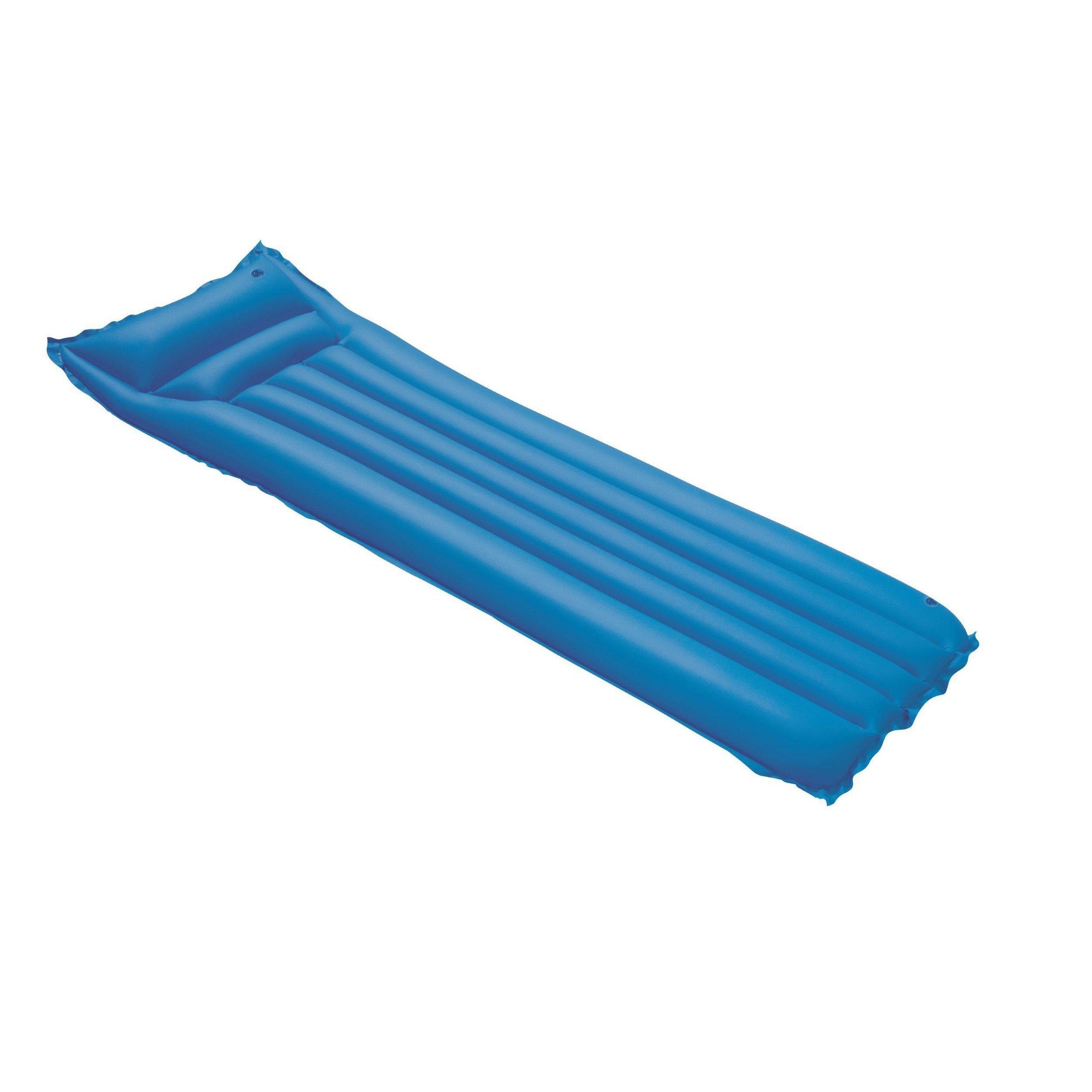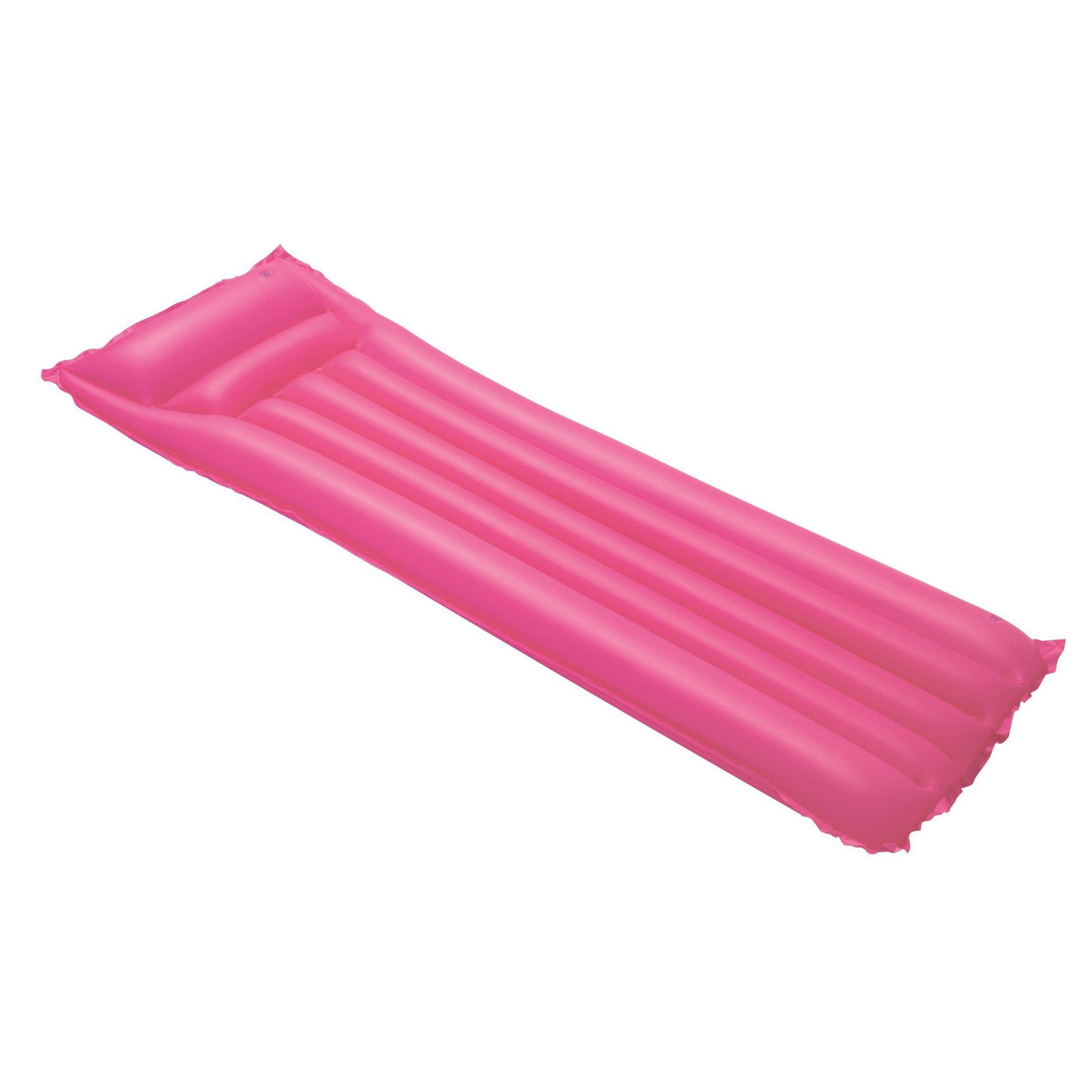 Luchtbed in felle unikleuren. Het hoofdkussen heeft een 2 kamer ontwerp. Incl. reparatie patch. In 3 kleuren assorti: roze, groen en blauw. Voor 1 persoon met een max. gewicht van 90 kg. Van 0,18 mm vinyl. Afmeting: 170x54x15 cm.