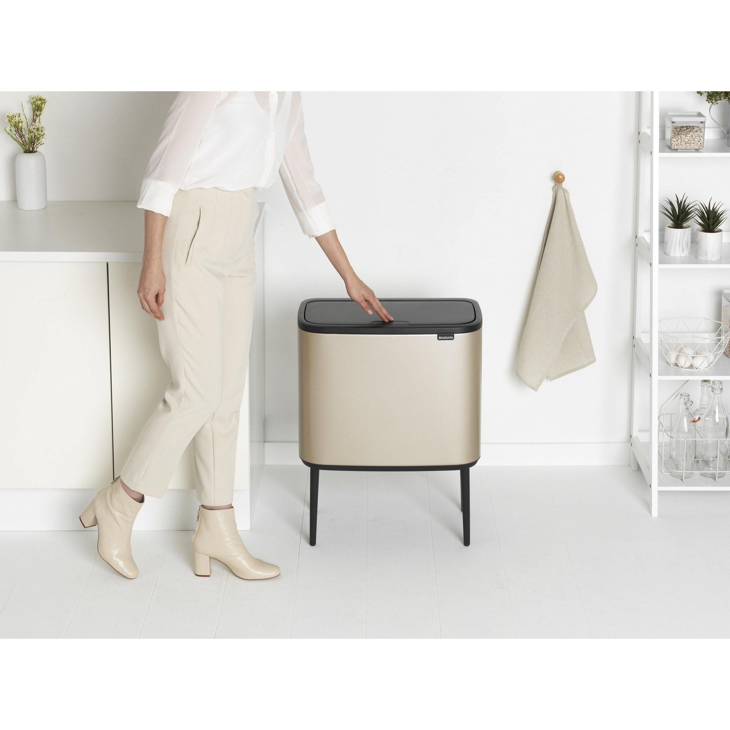 Brabantia Bo Touch Bin afvalemmer 3 x 11 liter met 3 kunststof binnenemmers Champagne
