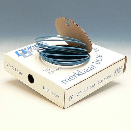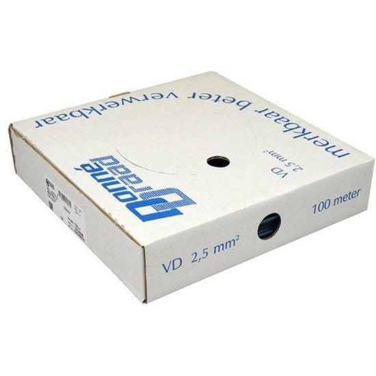 VD nuldraad met een totale lengte van 100M en een koperen kern van 2,5MM. De nuldraad zorgt voor de afvoer van de elektriciteit vanaf het apparaat.