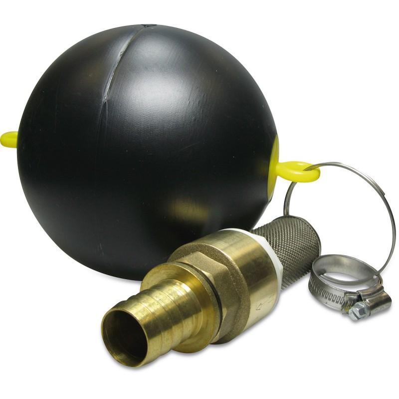 Bestaande uit: vlotterbal, zuigkorf, terugslagklep 1", messing slangtule 1" en slangklem