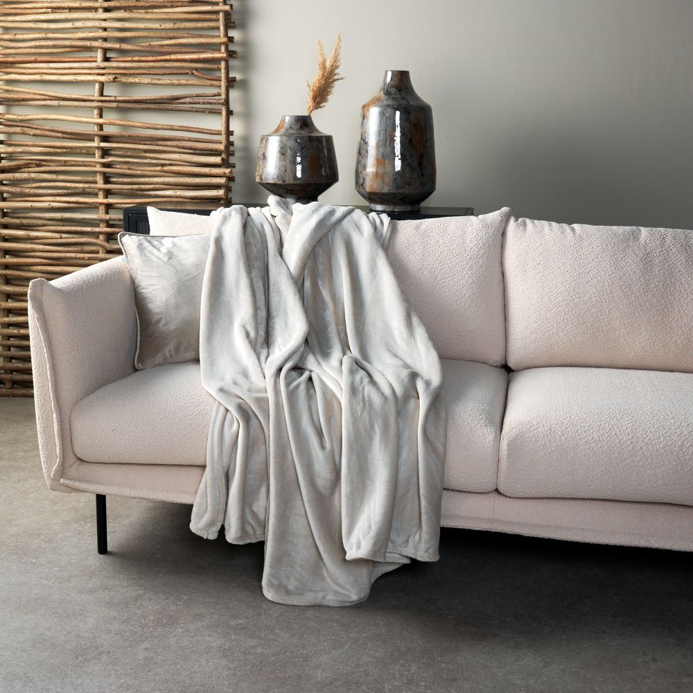 Dutch Decor plaid Charlie geeft je interieur een warme en elegante uitstraling. De zachte fleece in de tint Pumice Stone beige voelt heerlijk comfortabel aan en maakt deze extra grote plaid ideaal voor koude dagen. Door het royale formaat van B200 × H220 cm wikkel je jezelf volledig in voor rust en warmte. Combineer Charlie met Dutch Decor kussens voor een stijlvol en cosy geheel in huis.