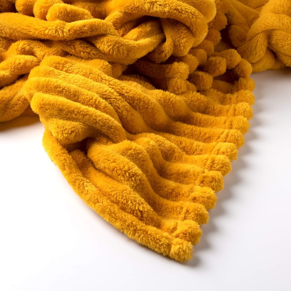 Dutch Decor plaid Ricky geeft je interieur een warme en donzige uitstraling. De zachte fleece in de tint Golden Glow geel voelt comfortabel aan en de grove ribstructuur aan beide zijden brengt extra textuur in je zithoek. Dankzij het royale formaat van B150 × H200 cm gebruik je deze plaid moeiteloos op bed, bank of fauteuil. Combineer Ricky met sierkussens van Dutch Decor voor een sfeervol en harmonieus geheel.