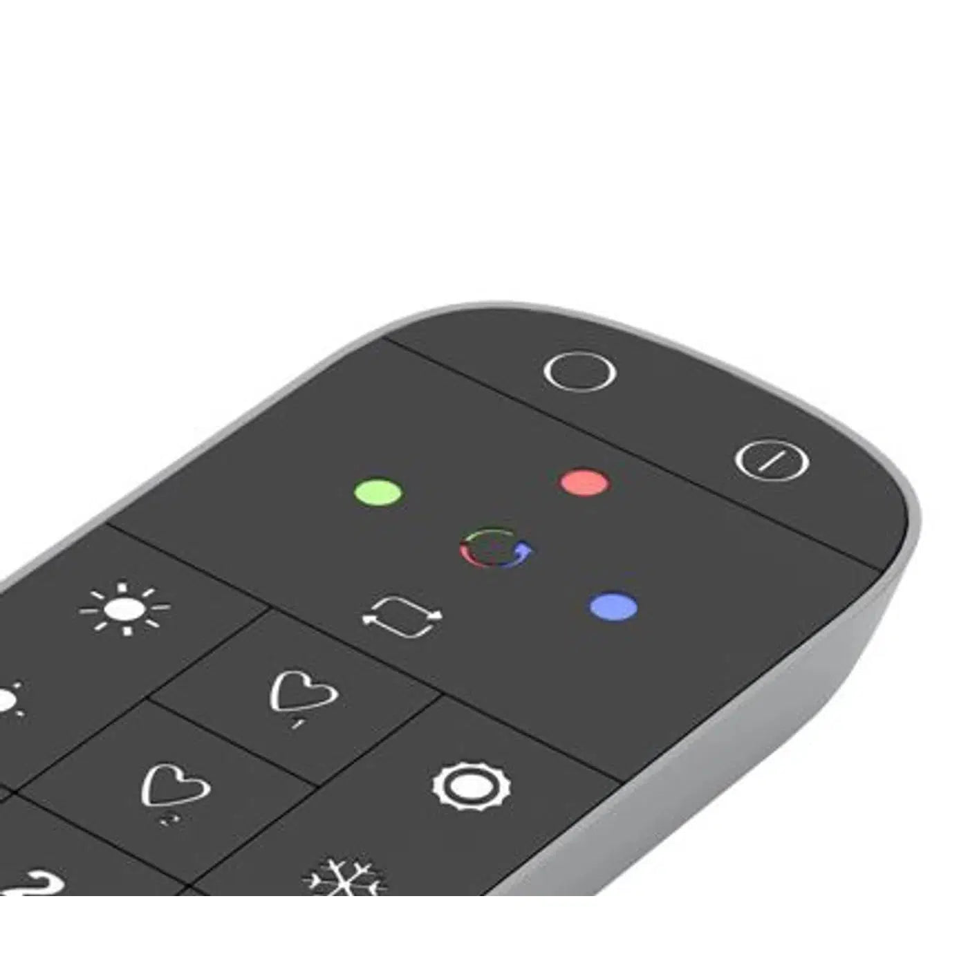 Met deze zwarte Eglo Zigbee afstandsbediening kunt je gemakkelijk één of meerdere Eglo Zigbee lampen en lichtbronnen bedienen. De functies zijn: aan/uit, dimmer (variabele intensiteit), aanpassing van de lichtkleur (warm wit, neutraal en koud, alsook een veelheid van RGB-kleuren, en twee verschillende verlichtingsmodi). Met deze afstandsbediening kunt je je favorieten opslaan en groepen lampen of armaturen groeperen. De bediening gebeurt via Bluetooth en Zigbee 3.0. Batterijen voor de afstandsbediening zijn inbegrepen.