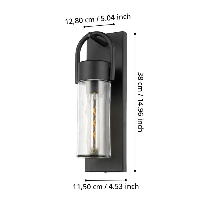 Eglo buitenwandlamp Carraro zwart met glas combineert een strak design met duurzame kwaliteit. De metalen behuizing in matzwart vormt een stijlvol contrast met de heldere glazen lampenkap, waardoor het licht sfeervol langs de gevel verspreidt. Dankzij de IP44-bescherming is de lamp bestand tegen regen en vocht, ideaal voor het terras, balkon of bij de voordeur. De E27-fitting biedt flexibiliteit in lichtsterkte en sfeer. Er zit geen lichtbron bij deze lamp. Maak de lamp compleet door een passende E27-lichtbron aan je winkelmand toe te voegen.