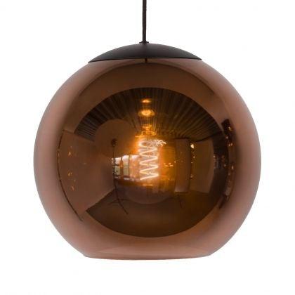 EGLO hanglamp Cordoba is uitgevoerd met een bolvormige lampenkap van koperkleurig glas. De lampenkap hangt aan een zwarte textielkabel die is bevestigd aan een ronde metalen plafondplaat in dezelfde kleur. Het spiegelende glas zorgt voor een elegante en verrassende uitstraling, waarbij de lichtbron pas zichtbaar wordt als de lamp aan is. Deze hanglamp is een stijlvolle aanvulling op moderne interieurs en komt prachtig tot zijn recht in de woonkamer of hal. Er zit geen lichtbron bij deze hanglamp. Maak de lamp compleet door een passende E27-lichtbron aan je winkelmand toe te voegen.