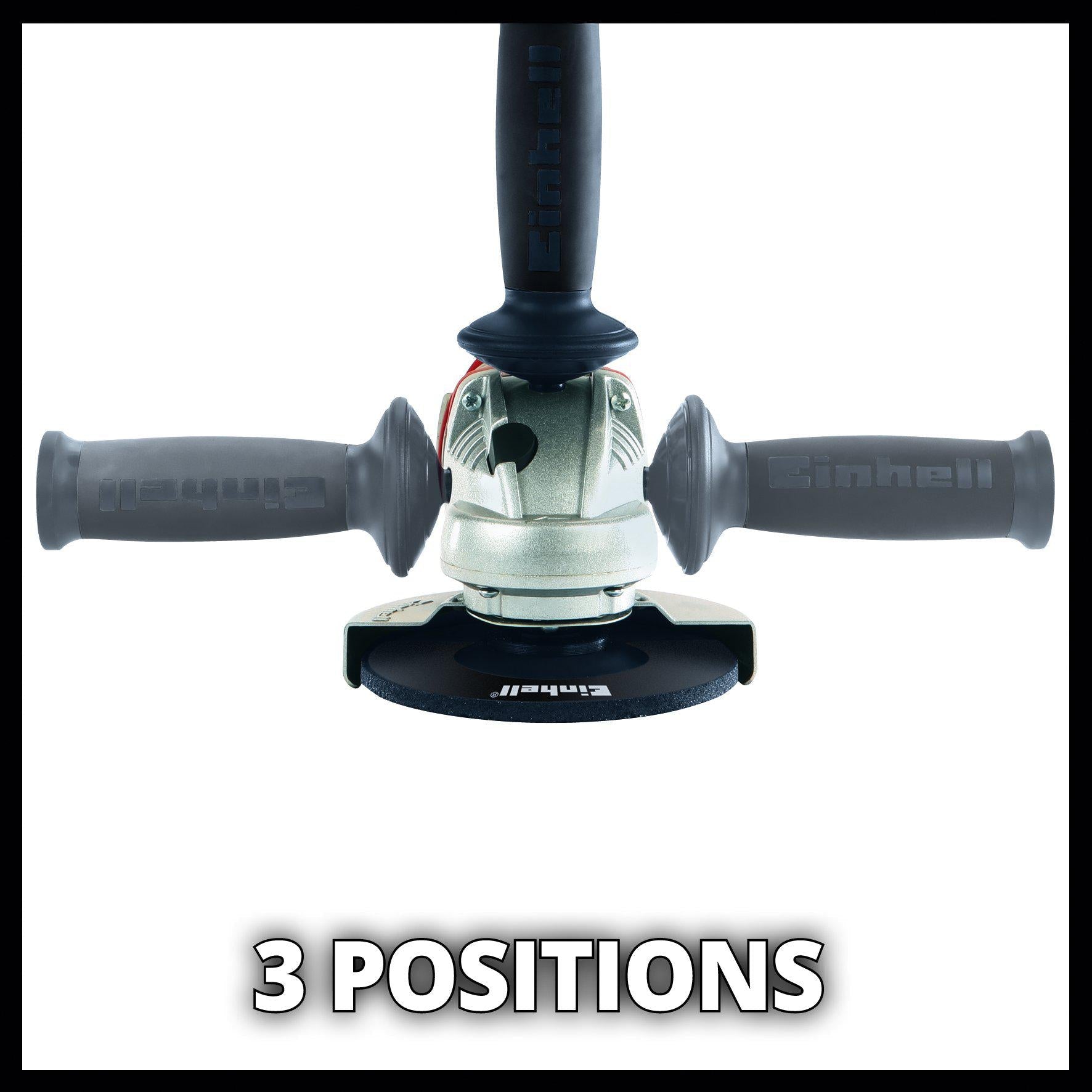 Ook wordt er een extra handgreep met de machine meegeleverd, die in drie posities te monteren is.