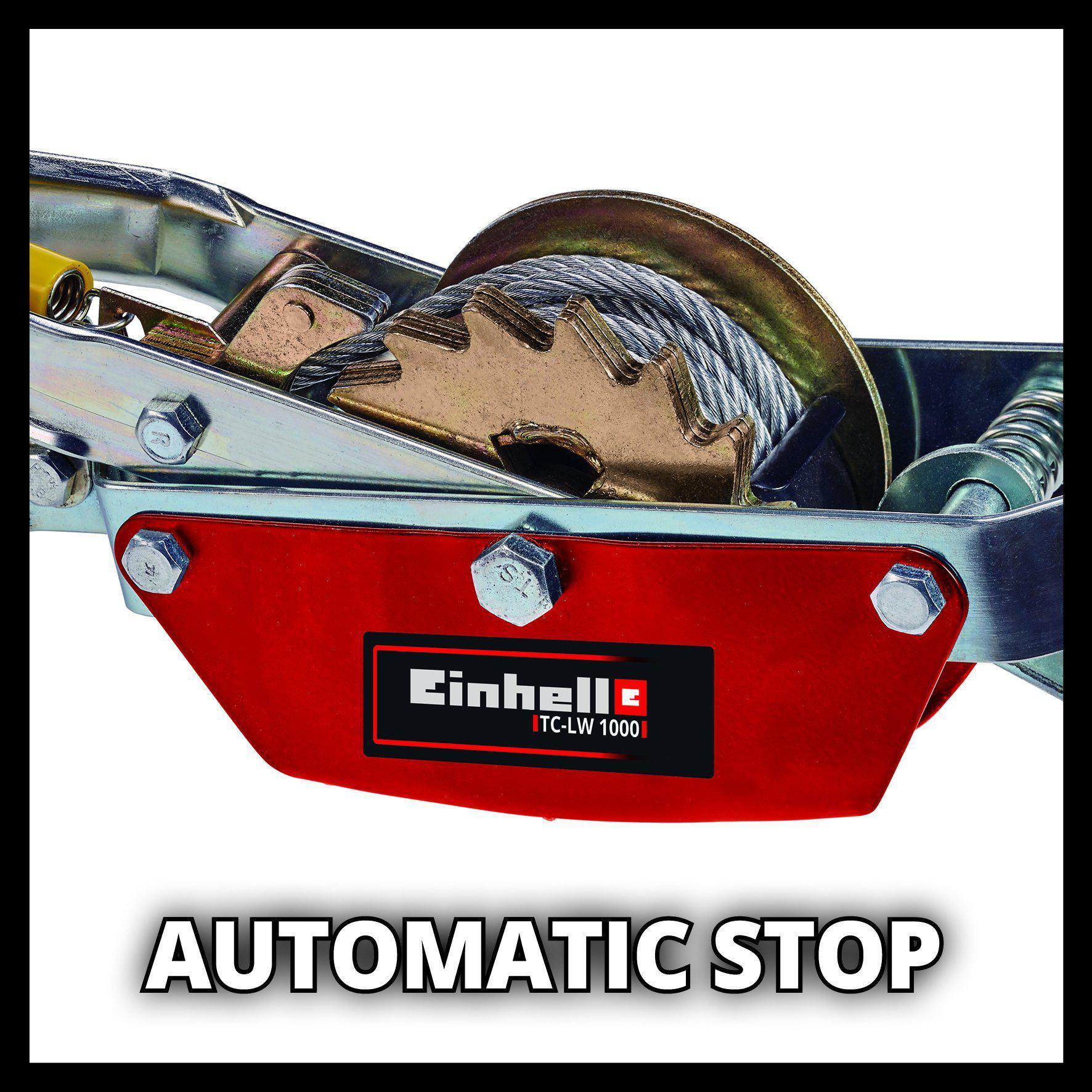 De Einhell TC-LW 1000 handheflier is geschikt voor het trekken en spannen van lasten met een maximale trekbelasting van 1000 kg en een maximale bruikbare afstand van 1,2 meter.