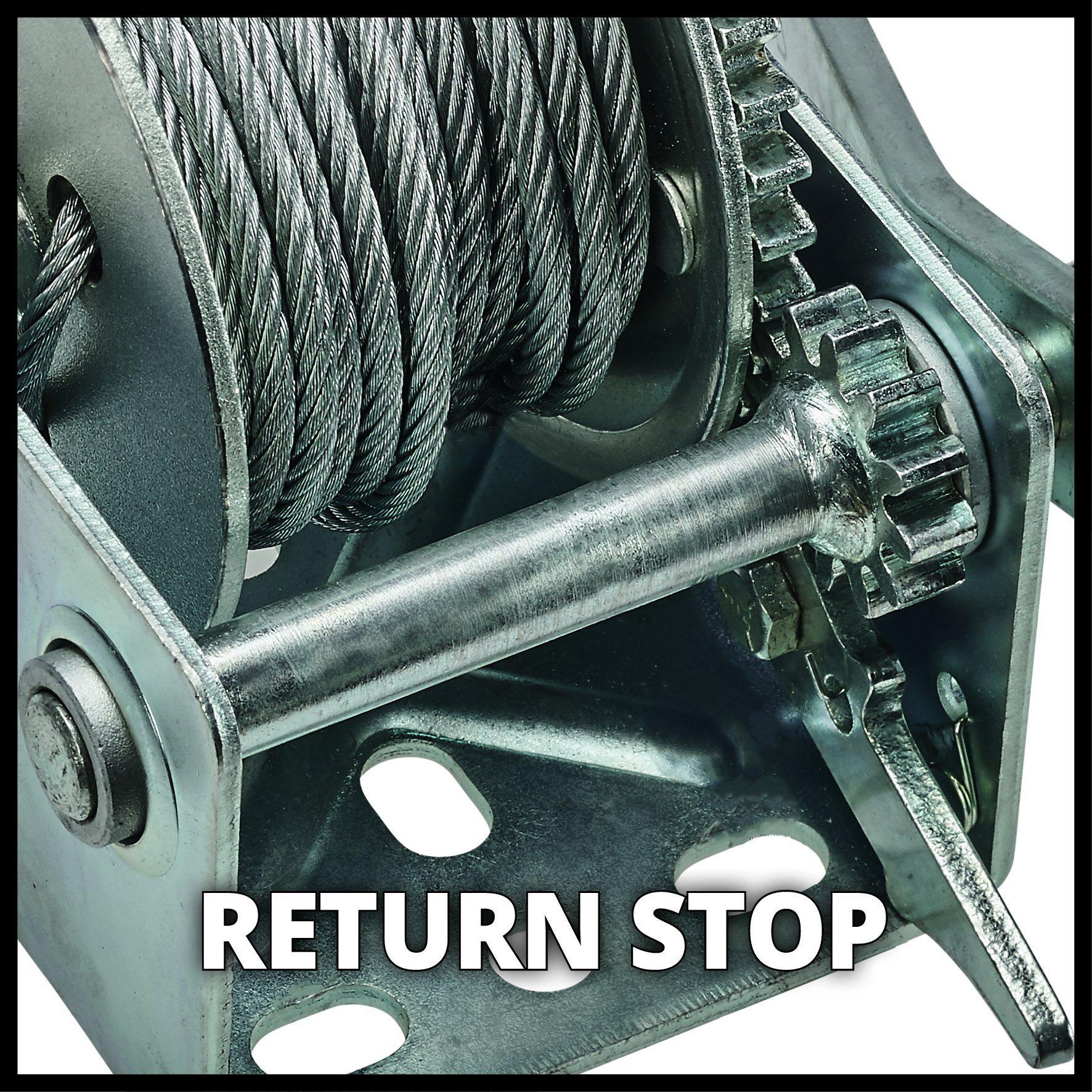 Dankzij een retourstop kunnen de kabel en de lading veilig worden gestopt.