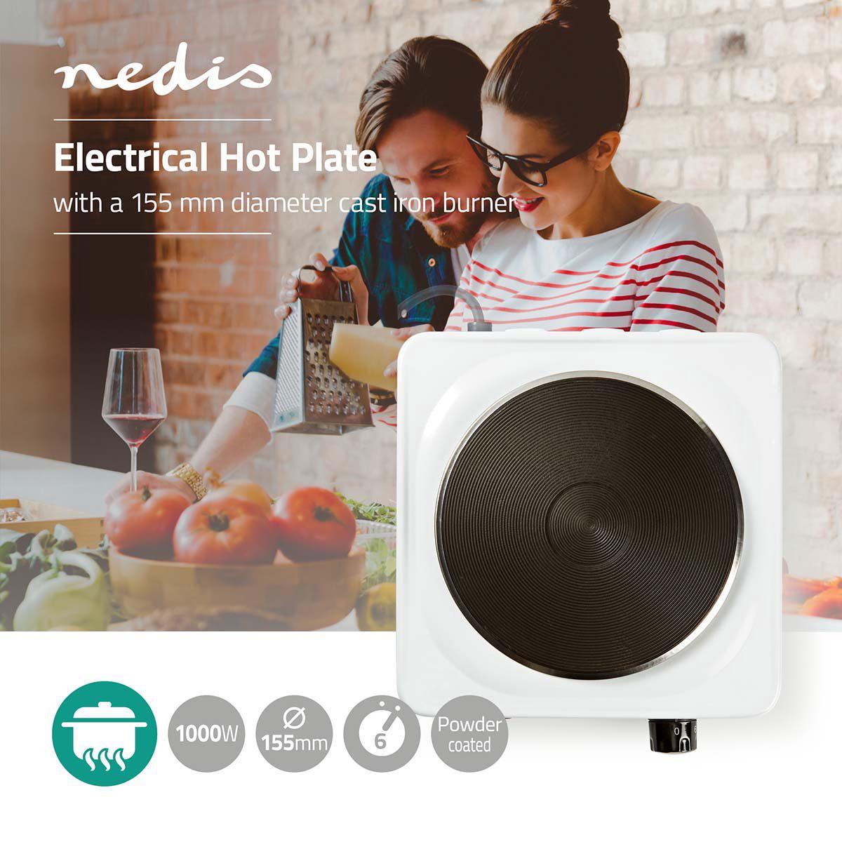 Deze compacte en draagbare elektrische kookplaat is ideaal om mee te nemen op vakantie, om thuis te gebruiken als extra kookmogelijkheid, of om je eten warm te houden terwijl je je gasten vermaakt. Regel de temperatuur met grote nauwkeurigheid met de thermostaatknop, waarmee je het warmteniveau voor je kookproces kunt instellen. Een indicatielampje geeft aan wanneer de door jou gekozen temperatuur is bereikt. Voor je veiligheid is de krachtige 1000 W kookplaat uitgerust met een oververhittingsbeveiliging. De gietijzeren plaat met een diameter van 155 mm zorgt voor een snelle overdracht van de hitte en de gepoedercoate stalen behuizing is duurzaam en eenvoudig schoon te maken.