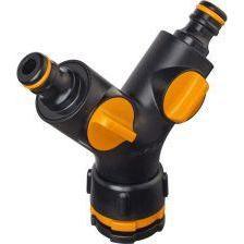 MULTI kraanaansluiting met 2 AAN / UIT ventielenInclusief drie schroefdraadmaten: 13 mm, 19 mm en 25 mmUniversele pasvorm - past bij andere merken