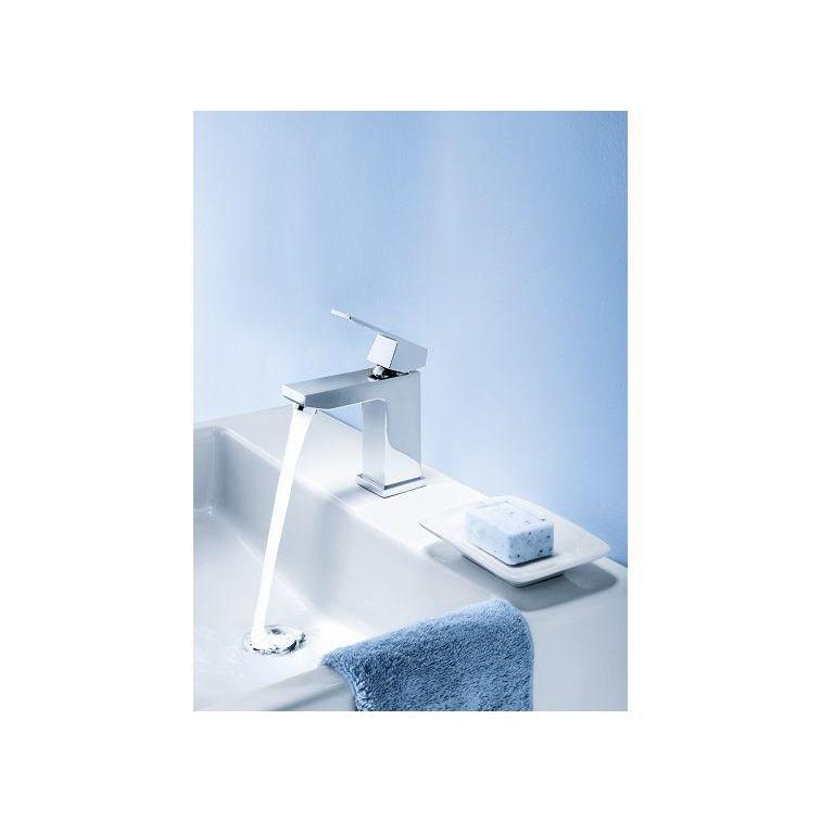 de perfecte kraan uit de eurocube serie voor de kleine ruimtes in huis waar alleen koud water genoeg is. Zoals de wc of de kelder. Deze kraan heeft een xs-uitloop die hem juist voor de kleine wastafel heel geschikt maakt. De kraan heeft één hendel om de watertoevoer te regelen en heeft een gladde body zonder trekwaste of waterstop. De kraan mag dan klein in formaat zijn, zijn prestaties zijn grohe-groot. Grohe ecojoy® zorgt ervoor dat je tot wel 50% op je waterverbruik bespaart. Het verbruik is maximaal slechts 5,7l per minuut. Door speedclean krijgt kalkaanslag geen kans. Wrijf zachtjes met de vingertop langs de kleine siliconen lamellen aan het uiteinde van de kraan om eventuele kalkdeeltjes simpel te verwijderen. Deze kraan mag gezien worden. Zeker door de prachtige en langdurige glans van chromen grohe starlight® beschermlaag.
