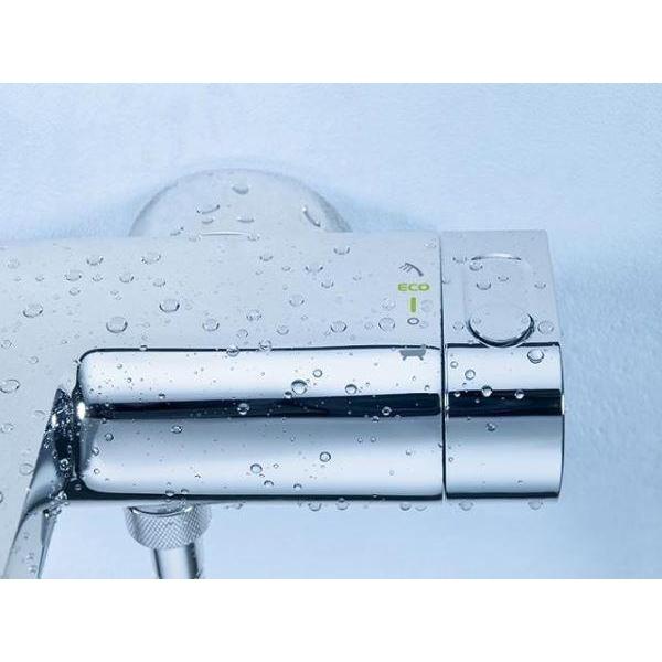 Deze douchemengkraan combineert design met functie. De kraan is aangenaam handig en zelfs intuïtief te bedienen. Door GROHE CoolTouch® wordt de buitenkant van de kraan nooit warmer dan de ingestelde temperatuur en SafeStop zorgt ervoor dat de watertemperatuur nooit, zonder dat je het wilt, warmer wordt dan 38°C. Wel zo veilig, zeker bij kinderen. En gemak dient de mens met de GROHE EasyReachTM tray. Deze is niet alleen mooi om te zien maar hierdoor is je shampoo en douchegel altijd binnen handbereik. De GROHE Grohtherm 2000 New is ook voorzien van een bespaarfunctie waarmee je tot wel 50% op je waterverbruik bespaart. Goed voor je portemonnee én je helpt het milieu ook een handje.
