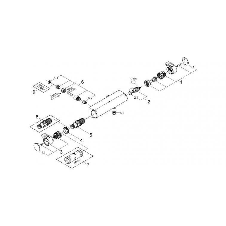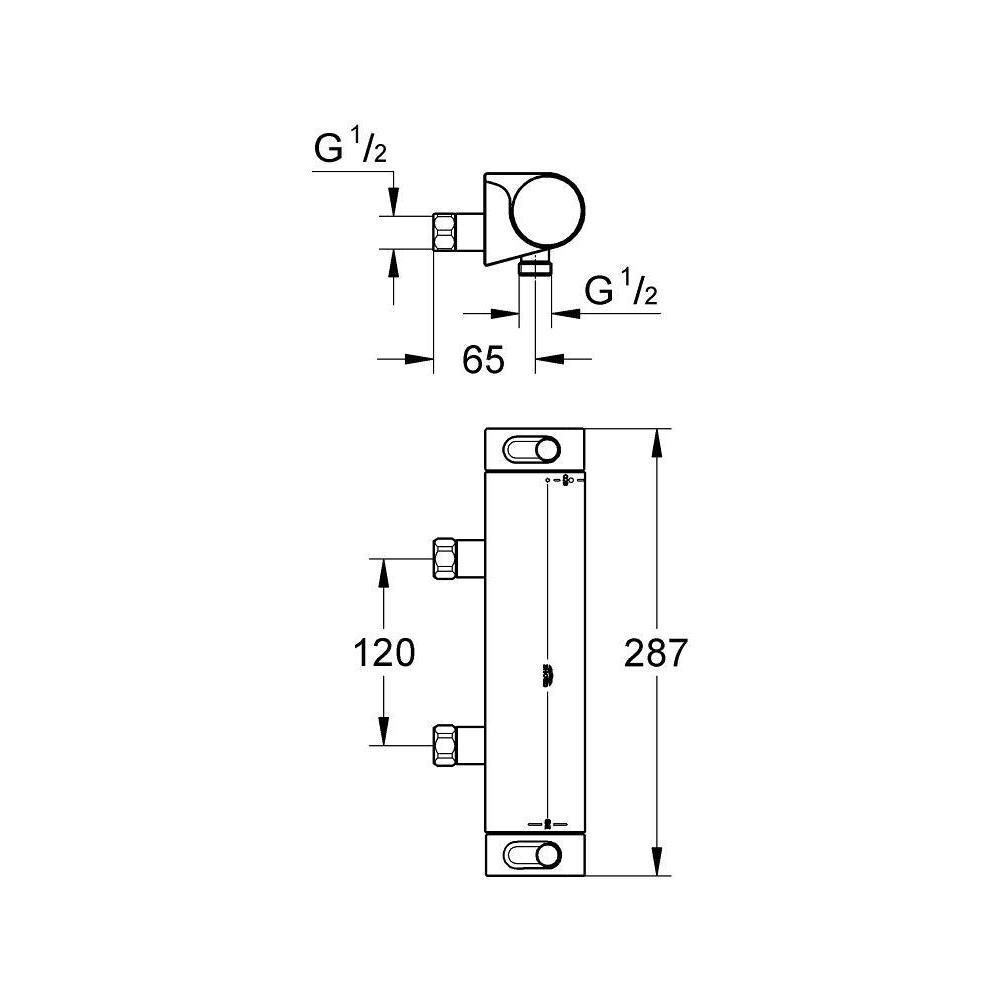 grohe grohtherm 2000 cool touch douchemengkraan (opbouw), chroom, thermostatisch, maat aansluiting aanvoer 1/2"", aantal grepen tweegreeps, hartafstand 120mm, wand, temperatuurbegrenzing, keramische schijven, koele behuizing, aansluiting slang onder, temperatuurblokkering (38 gr.C).