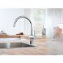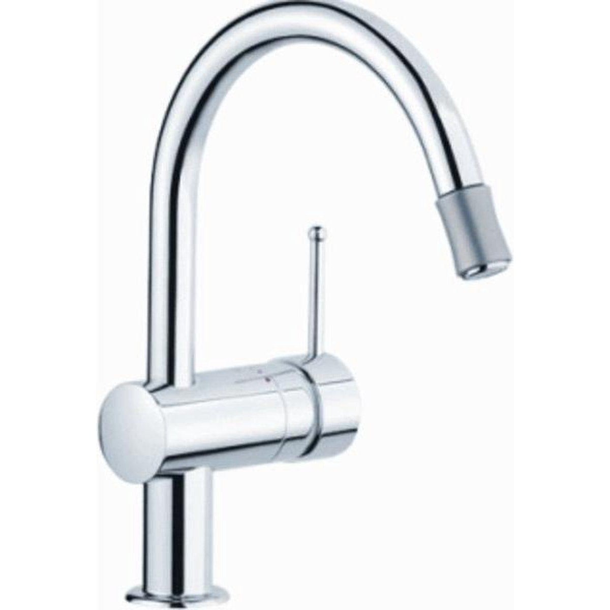 Uitvoering; uitloop draaibaar boven, uittrekbare uitloop met perlator, type kraanknop hendel.