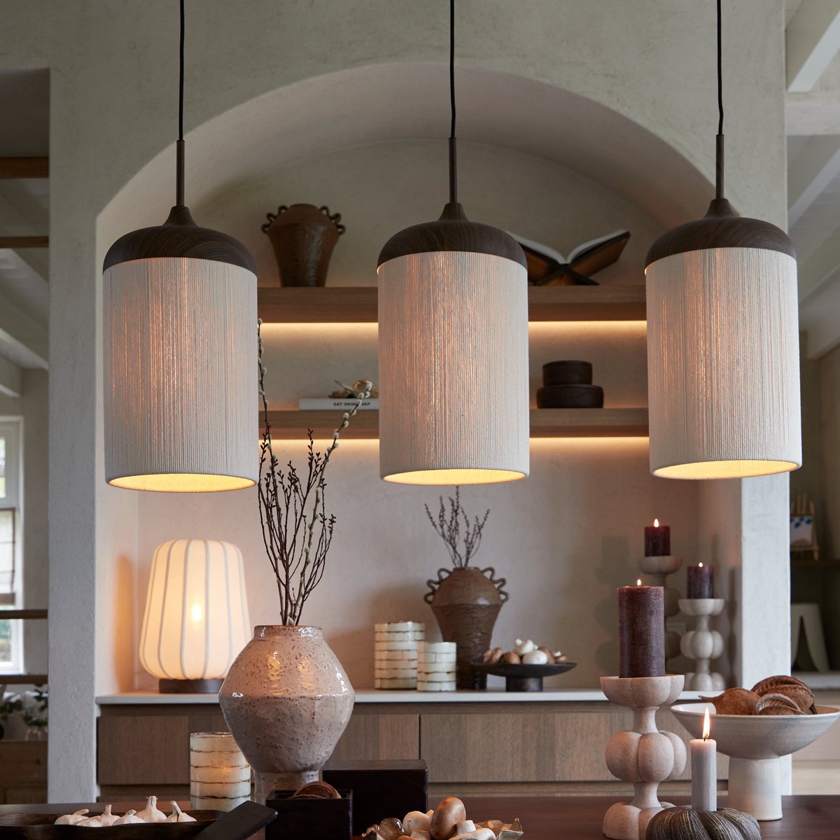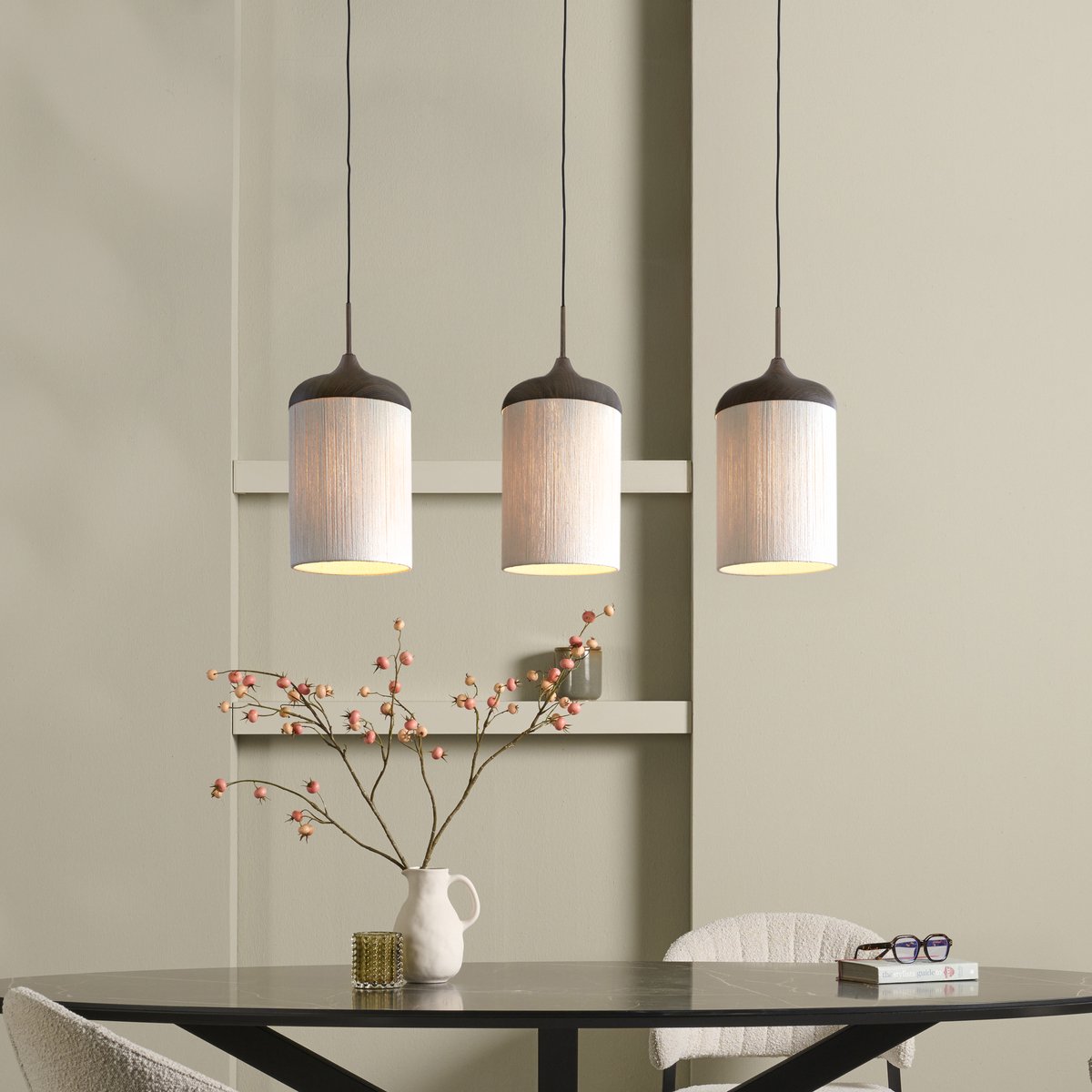 Hanglamp 3L 90x22x32 cm DANIA hout print d bruin+touw crème