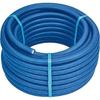Henco meerlagenbuis glad, uitwendige buisdiameter 20mm, wanddikte 2mm, met mantelbuis, buis blauw, handelslengte 100m, KIWA-keur, mantel blauw, diffusiestop, flexibel, tussenlaag aluminium, 5 lagen, expansiecoëfficiënt 0.025mm/(m.K), geschikt voor opbouwmontage, KOMO-keur,
