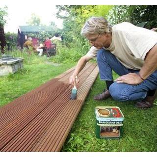 Bangkirai olie kan eenvoudig met de kwast worden aangebracht en kan zowel op nieuw als vergrijsd bangkirai- en ander hardhout worden toegepast.