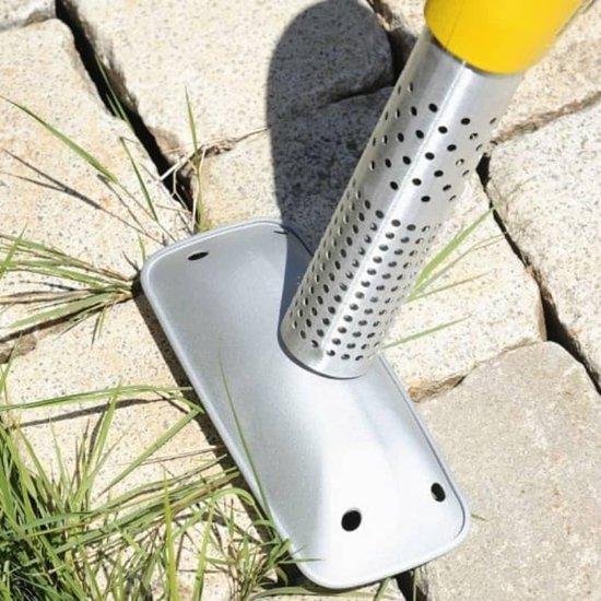 Behandeling met hitte is een doeltreffende en milieuvriendelijke manier om onkruid gericht en blijvend te verwijderen op elke plaats in de tuin zoals het gazon, bloembed of tussen de tegels van het terras. Deze nieuwe elektrische onkruidbrander werkt 5x sneller en doeltreffender dan bestaande onkruidbranders dankzij het XL onkruidschild (25 x 10 cm) en de krachtige 2000W motor met keramisch verwarmingselement waarmee een temperatuur van 600°C wordt gegenereerd. Het unieke ontwerp van het extra grote onkruidschild garandeert een zeer gelijkmatige hitteverdeling over het gehele schild en is ideaal voor behandeling van grote oppervlakten zoals grind, paden en randen. Het XL schild kan eenvoudig worden verwisseld met het eveneens meegeleverde kleine ronde schild dat gebruikt kan worden voor precisiebehandelingen in bijvoorbeeld het gazon of de moestuin. Doordat er geen gebruik wordt gemaakt van gas of een open vlam en er ook geen chemische bestrijdingsmiddelen worden gebruikt is deze manier van onkruidbestrijding niet alleen veilig, maar ook duurzaam. Daarnaast komen er geen afvalstoffen vrij en is het apparaat zuinig in gebruik. De Green Power XL is uitgerust met 1,5 meter kabel en een aan/uit schakelaar met afkoel/ ventilatorstand voor extra veiligheid. De hitte die door het apparaat wordt gegenereerd kan ook uitstekend gebruikt worden voor het snel en veilig aansteken van een barbecue. Met de afkoel/ ventilatorstand kunt u zelfs de bijna gedoofde kooltjes weer aanwakkeren. Voor meer comfort en controle tijdens het gebruik is de Green Power XL uitgerust met een extra handgreep om eenvoudig te manoeuvreren door de tuin. Na gebruik kan het apparaat weer veilig worden opgeborgen dankzij de afkoel / ventilatorstand die ervoor zorgt dat de brander gecontroleerd en veilig afkoelt. De extra (inklapbare) steun op het apparaat voorkomt dat hete onderdelen tijdens het afkoelen in aanraking kunnen komen met de grond.