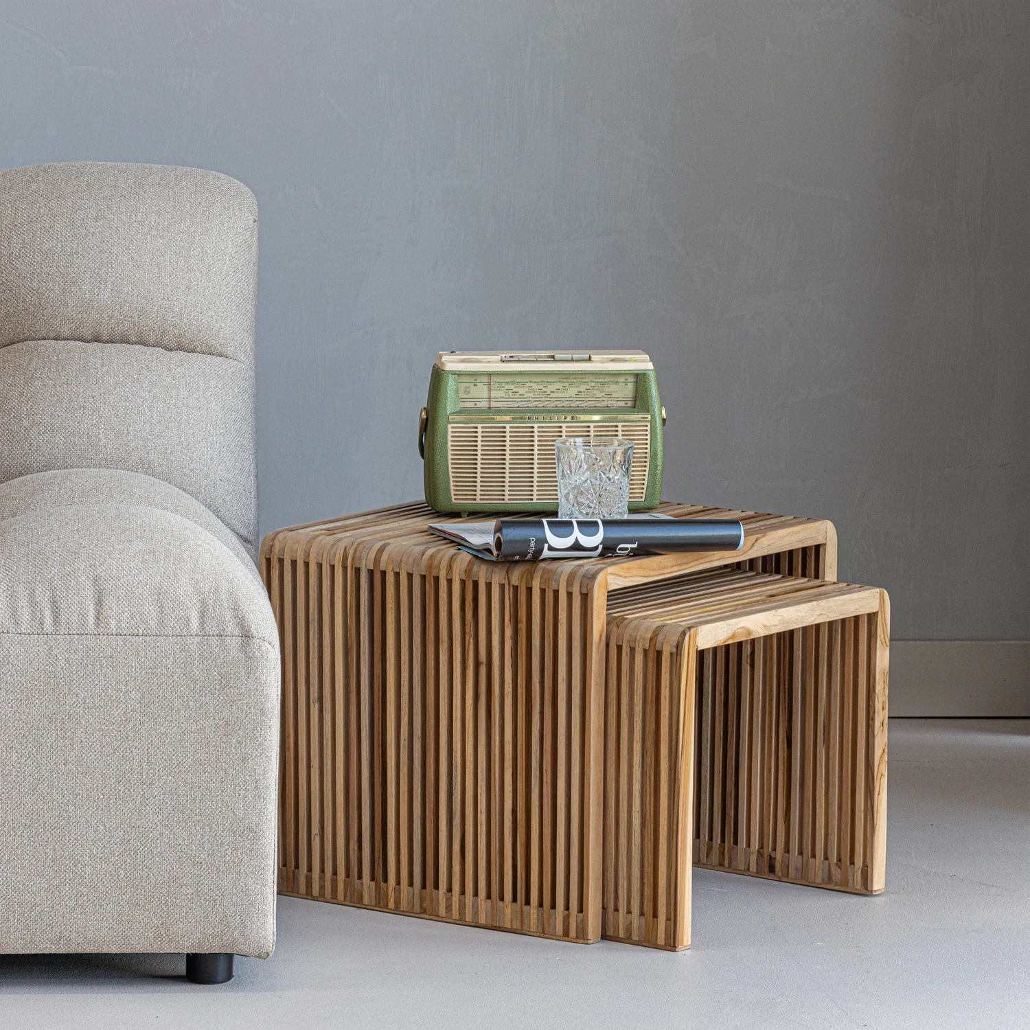 JASMIJN BIJZETTAFEL RECYCLED TEAK NATUREL - SET VAN 2