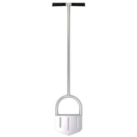 Graskantsteker met lange steel, zorgt voor een ergonomische houding. Het instapje in het midden zorgt ervoor dat de graskantsteker recht in de grond gestoken kan worden.