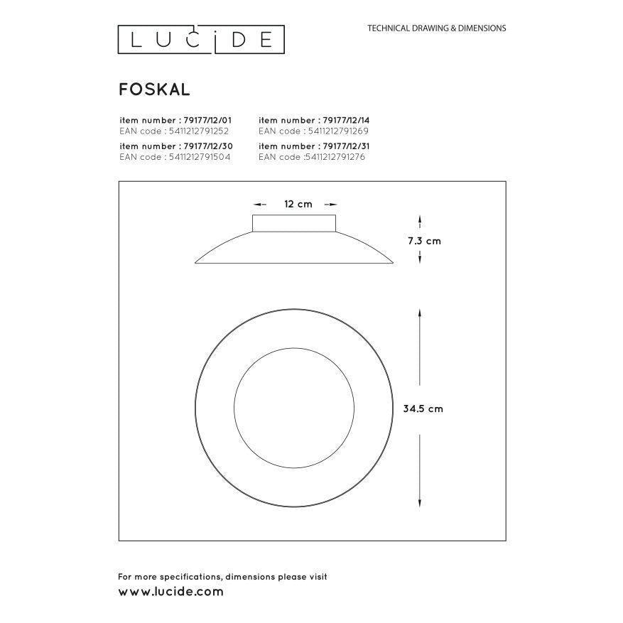 Lucide FOSKAL - Plafonnière - Ø 34,5 cm - LED - 1x12W 2700K - Mat Goud / Messing