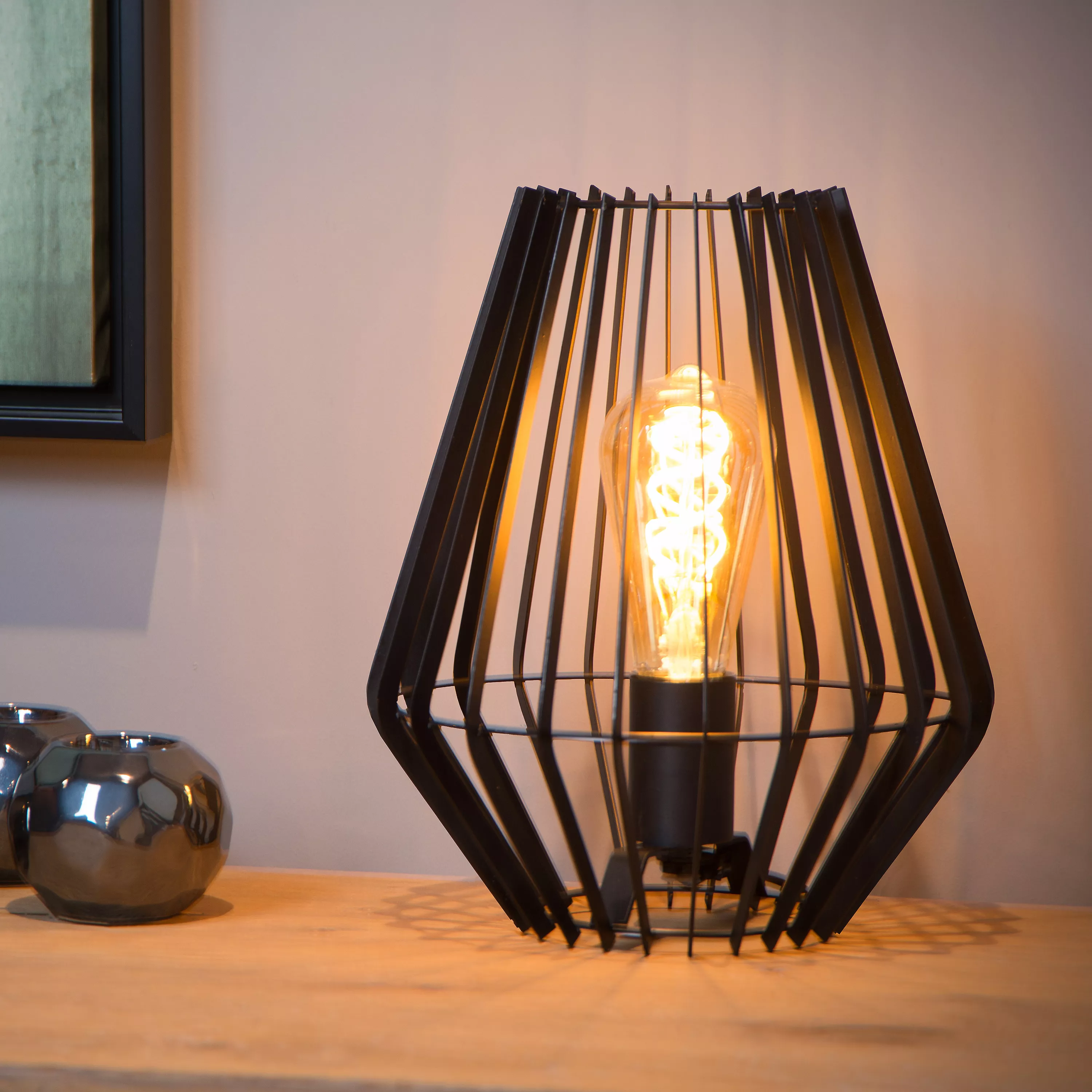 Tafellamp Reda doet denken aan een gezellige vuurkorf op een winters marktje. Het design is gemaakt in hoogwaardig metaal. De slank uitgewerkte lijnen zijn op verschillende hoogtes verbonden via smalle cirkels. Het ontwerp geeft je flexibiliteit voor je interieur. Je laat Reda gewoon rechtop staan of legt haar op een van de schuine zijden. Zo kies je ook de richting van het licht. Zet je een item uit je interieur in de spotlights of laat je alle aandacht voor Reda zelf? Kies wat best past in jouw woning.