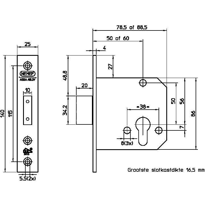 | Afmeting slotkast (HxBxD): | 86x89x17 mm |