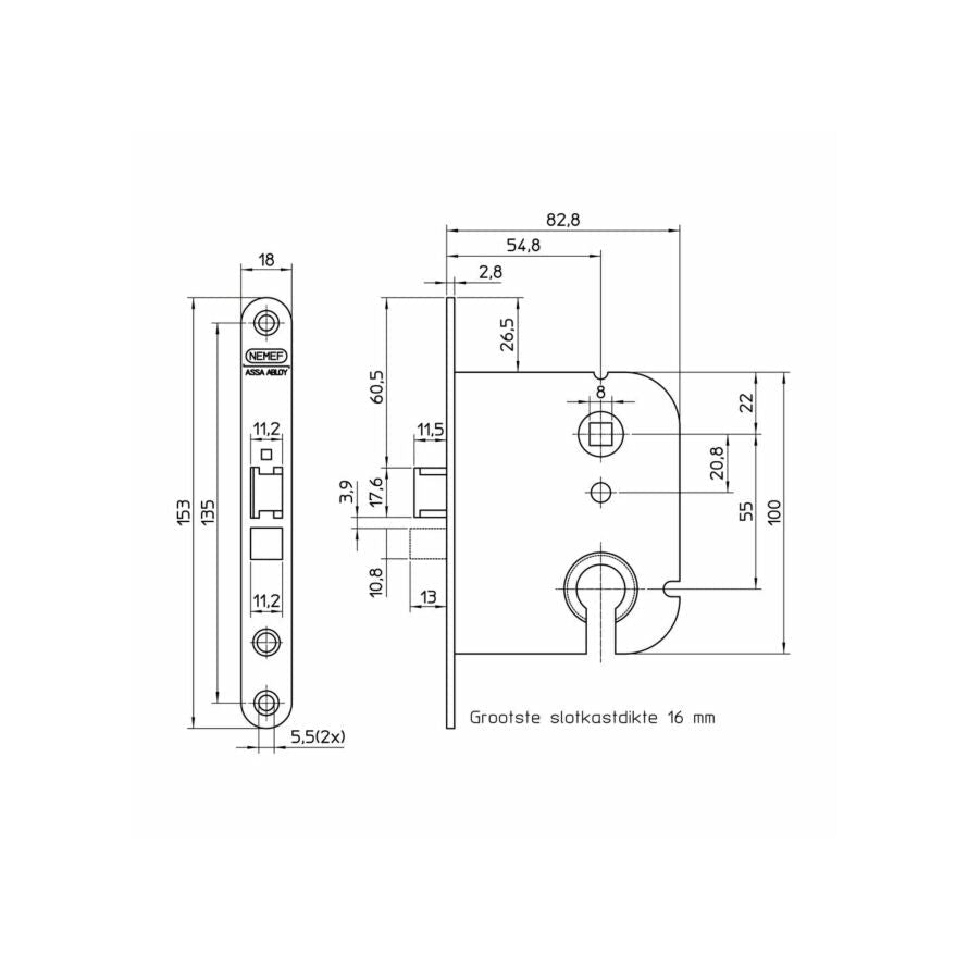 Nemef binnendeur insteek cilinderslot 1449/4-55. Vervanging voor oude lips/bruynzeelsloten in met name opdekdeuren. Te combineren met hoppe deurbeslag van hoppe 202KP of Hoppe 378 serie.