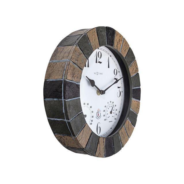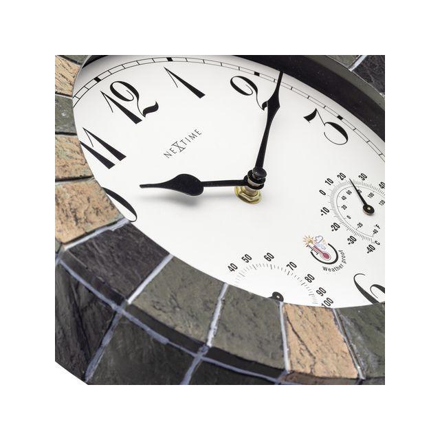 De wandklok NeXtime Aster is een zeer complete tuinklok van steen die buiten gebruikt kan worden. Het gebruik van extra rubberen ringen om te voorkomen dat het water de kwetsbare delen van de klok bereikt, maakt deze klok bijzonder en weerbestendig. De klok is robuust en stijlvol door de steenlook. Tijd, temperatuur en vochtigheid in 1 apparaat. De wijzerplaat is wit en heeft een grote romeinse index voor de uuraanduiding. Door de zwarte wijzers zijn de klok en de meters goed afleesbaar. De klok werkt op 1 AA-batterij (niet inbegrepen).