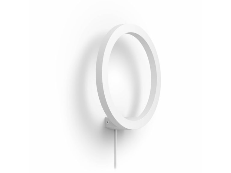 Philips Hue wandlamp Sana wit met gekleurd licht straalt moderne elegantie uit met een slank, rond design. De witte behuizing verspreidt een zacht, indirect licht dat zowel warm wit als kleurrijk kan worden ingesteld. Ideaal voor het creëren van sfeer in de woonkamer, hal of slaapkamer. Dankzij de slimme Hue-technologie is de lamp eenvoudig te bedienen via app of spraak. De lichtbron is inbegrepen en energiezuinig LED, dimbaar via Philips Hue.