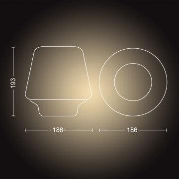 Een mooie tafellamp met moderne uitstraling die prachtig staat in ieder interieur. De lamp wordt geleverd met een Hue E27 lichtbron en Dimmer Switch. Hiermee kunt u schakelen tussen koel, helder licht en sfeervol warmwit licht. Helder daglicht werkt verfrissend en helder, en warmwit licht juist ontspannend voor een relaxte avond. Het Hue systeem is makkelijk te installeren zonder ingewikkeld installatiewerk. Het is mogelijk om meerdere Hue lampen aan één dimmer te koppelen. Deze lamp kan ook goed gebruikt worden als nachtlamp in de slaapkamer. Deze lamp beschikt ook over Bluetooth en hiermee kunt u de lamp ook bedienen via de Bluetooth app op uw telefoon of tablet. Wil je genieten van de maximale mogelijkheden van Hue, zoals het personaliseren van lichtscènes, routines en timers? Verbind de lamp dan met de apart verkrijgbare Philips Hue Bridge.
