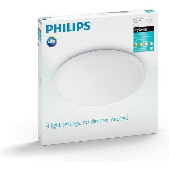 Een prachtige plafondlamp van Philips myLiving die bijzondere effecten creëert in uw woonkamer. De lamp geeft optimaal en gelijkmatig licht. De sterkte van het licht kan worden aangepast van 2700 tot 6500 K (van warm wit naar koel daglicht). Door de geïntegreerde LED lampen is deze lamp zeer energiezuinig.