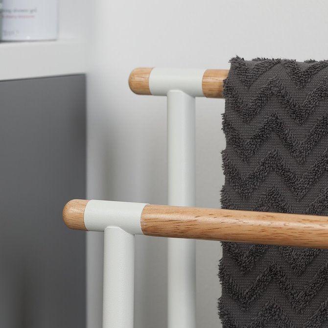 Het Sealskin Brix handdoekrek is eenvoudig te plaatsen in iedere badkamer. Droog je handdoeken op dit rek of hang je kleding op. Het wit metalen rek is gecombineerd met mooie houten accenten.