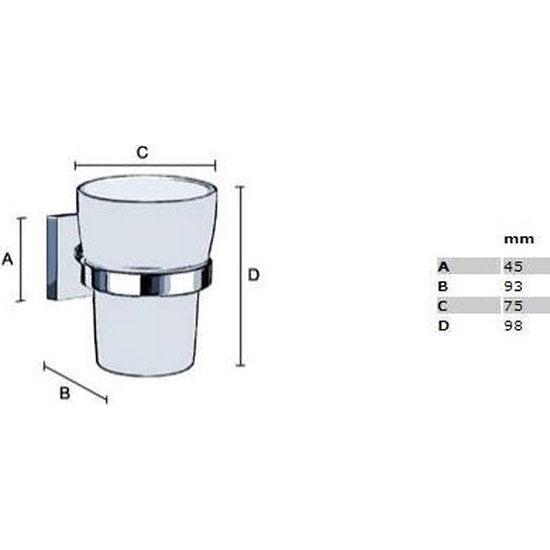 Smedbo House RK343 bekerhouder van mat glas in de kleur chroom. Mooie combinatie van een vierkante rozet met de ronde vormen van de functionele onderdelen.