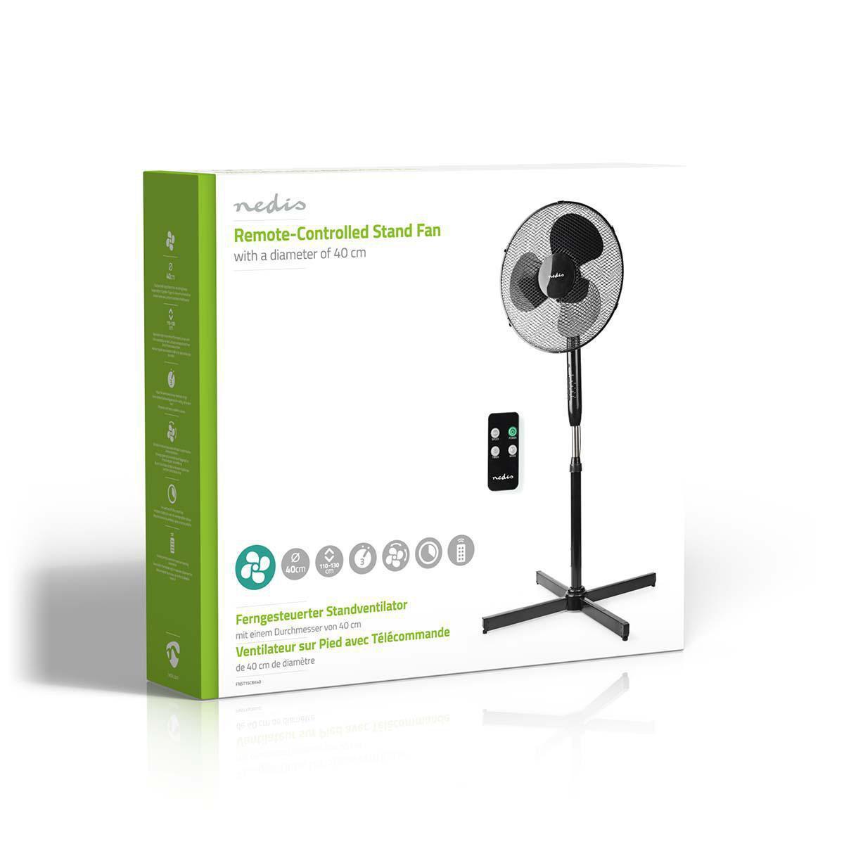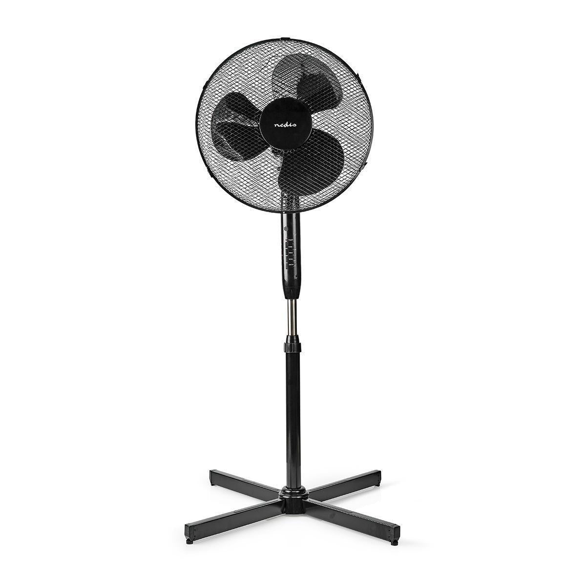 Deze Nedis staande ventilator geeft een verkoelend en verfrissende bries dankzij de grote ventilatorbladen. Middels de knoppen op de ventilator kun je eenvoudig een keuze maken uit de drie snelheidsstanden. Aanpasbaar in hoogte en met de oscillatie- en draaifunctionaliteit maakt het mogelijk om de wind in iedere gewenste richting en hoek te richten. Zet de timer aan en de ventilator schakelt zichzelf uit na de ingestelde tijd tussen een tijd van 0.5 - 7.5 uur.