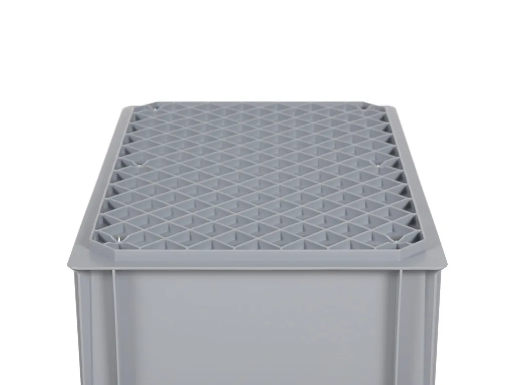 SOLID LINE stapelbak met deksel - 600 x 400 x H 320 mm (gladde bodem) - grijs