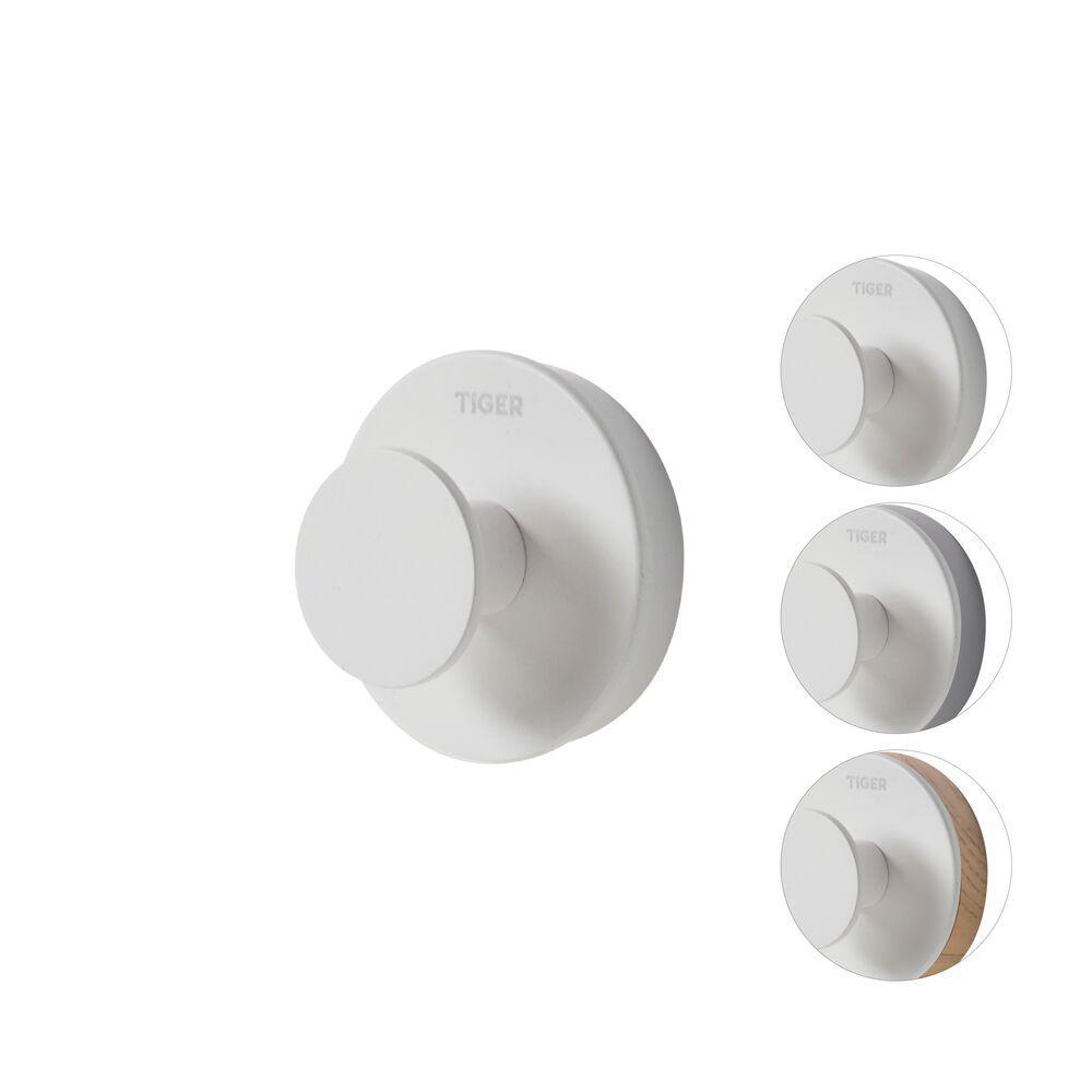 "De haak groot uit de Urban serie van Tiger is uitgevoerd in de kleur mat wit en wordt geleverd met twee decor ringen. De decor ringen, in de kleur licht eiken en grijs, maken het mogelijk een subtiel kleuraccent toe te voegen. Het is ook mogelijk de haak zonder de decor ring te monteren waardoor het zeer eenvoudig is om het product aan de gewenste stijl aan te passen. Bij de montage van het artikel wordt gebruik gemaakt van een muurplaatje waardoor de bijgeleverde bevestigingsmaterialen uit het zicht verdwijnen. De Urban serie bevat tevens een groot aantal aanvullende accessoires voor de badkamer en toiletruimte. Alle in dezelfde stijl.