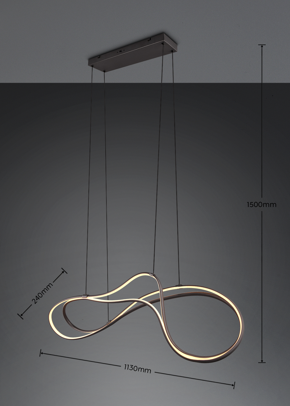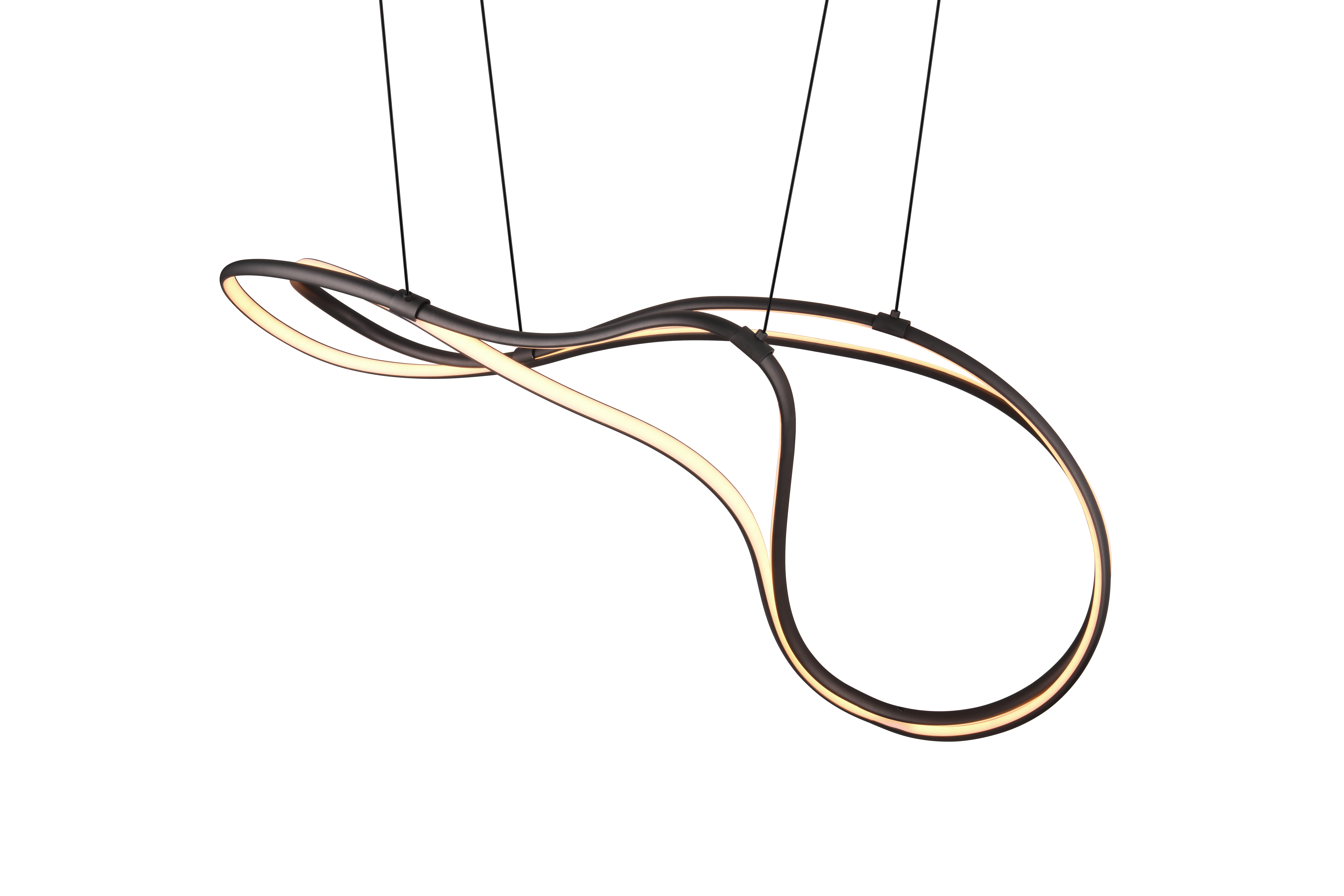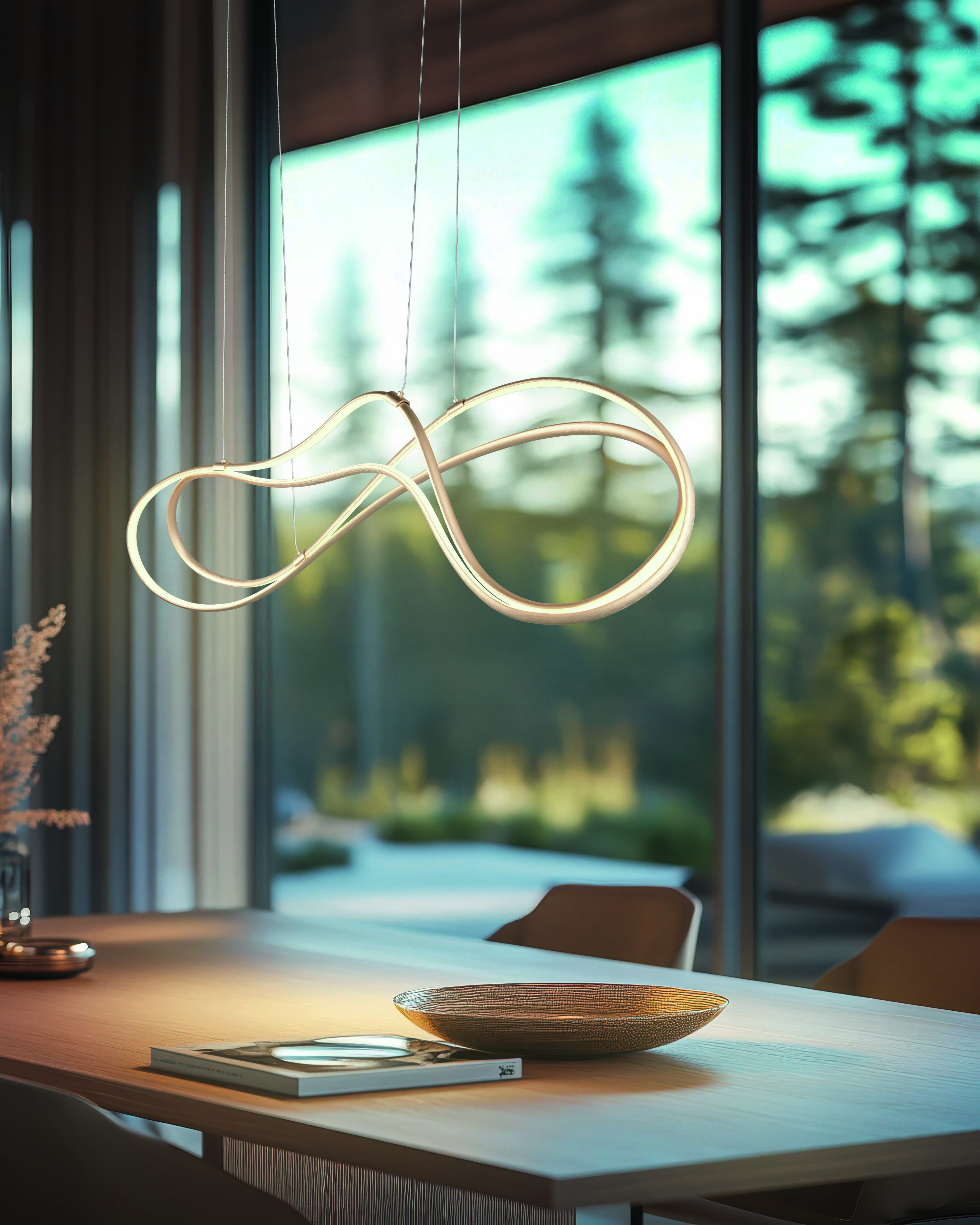 Trio hanglamp NALA geeft je eettafel een moderne en opvallende uitstraling. De twee doorlopende verlichtingselementen vormen een elegant gebogen lijn die de ruimte een bijzonder lichtaccent geeft. Op het armatuur kies je via de DIP SWITCH uit drie lichtkleuren en met de geïntegreerde SWITCH dimmer pas je de helderheid in drie stappen aan. De geïntegreerde LED lichtbron is inbegrepen en zorgt voor energiezuinig licht.