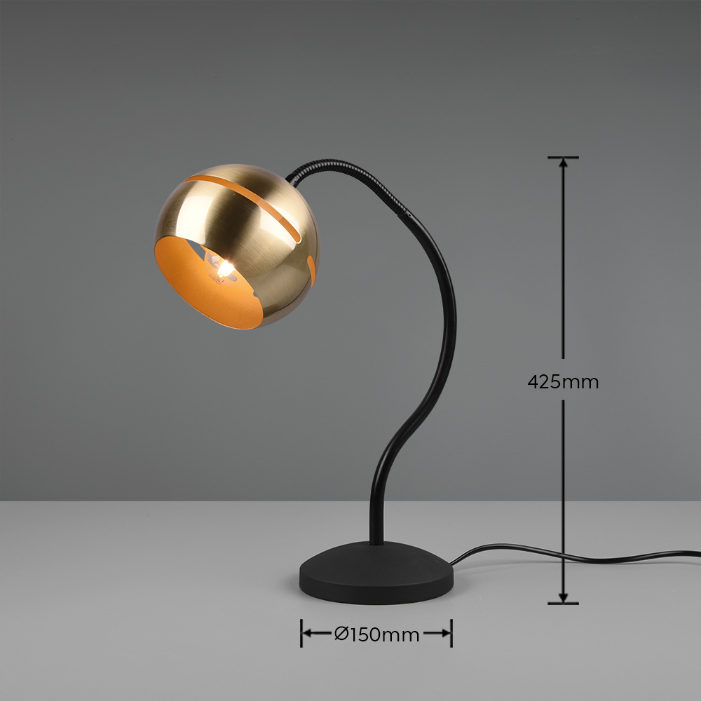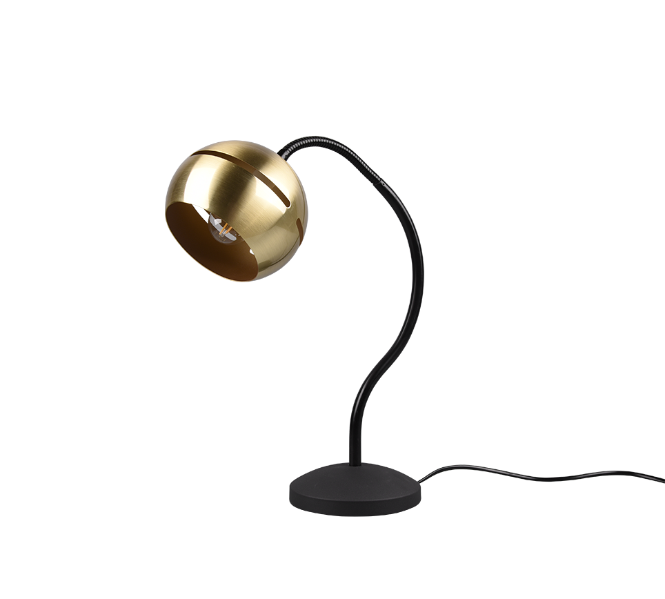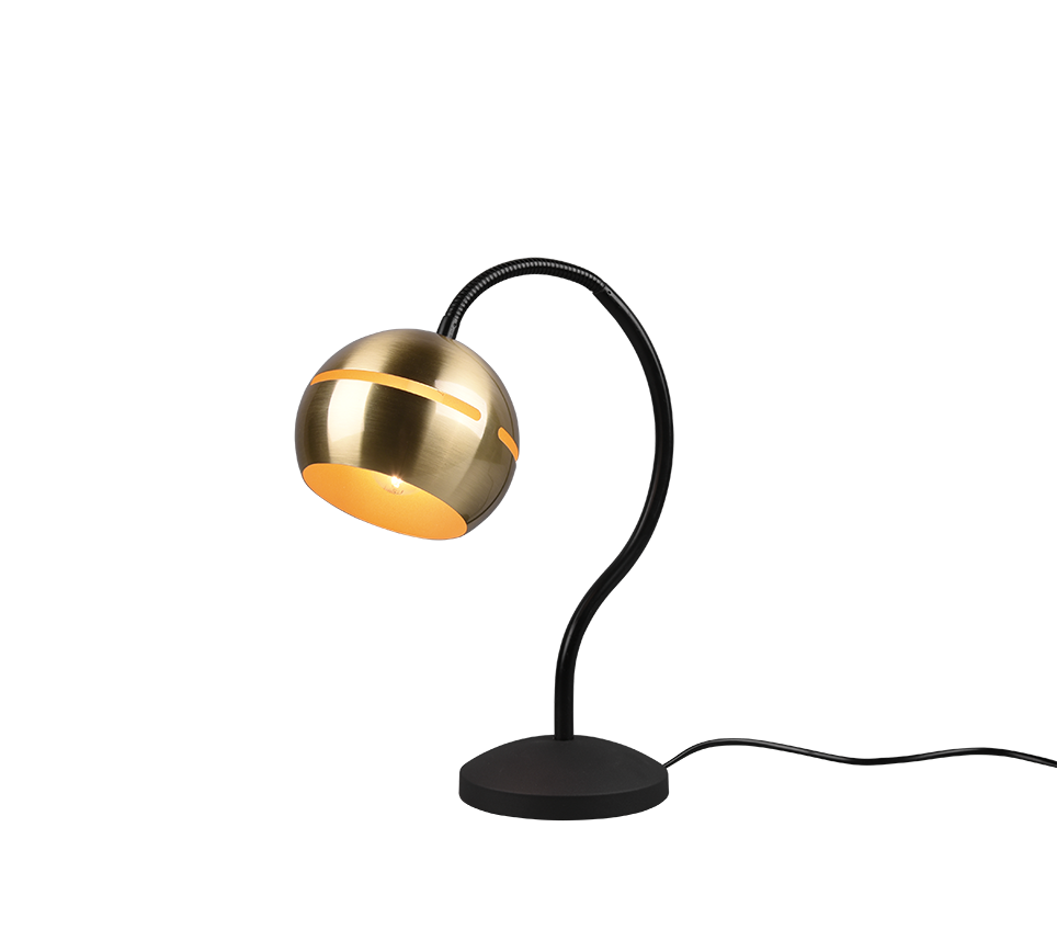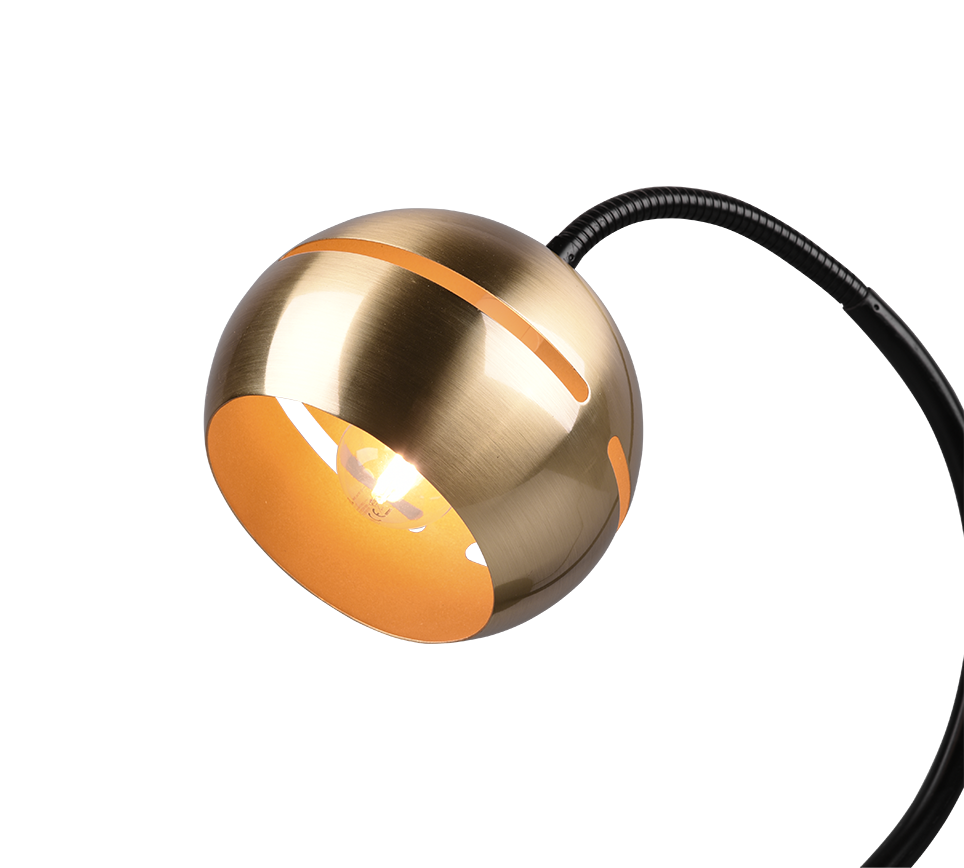 Trio Tafellamp Fletcher Messing Mat brengt warmte en elegantie in je interieur. Met zijn futuristische ontwerp en luxe messingkleur past hij perfect op een nachtkastje, dressoir of bureau. Maak de lamp compleet door zelf passende E14-lichtbronnen aan je winkelmand toe te voegen.