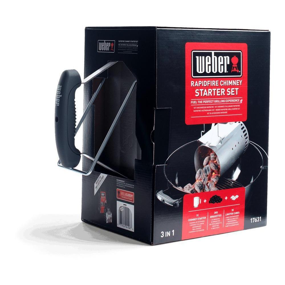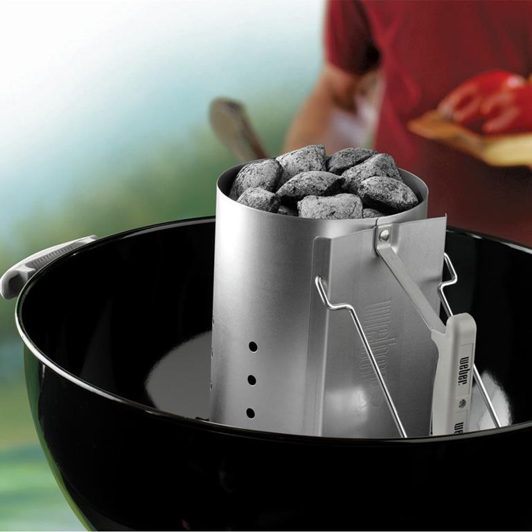 BEVAT 2 KG WEBER BRIKETTEN, 3 AANMAAKBLOKJES EN EEN WEBER® BRIKETTENSTARTER