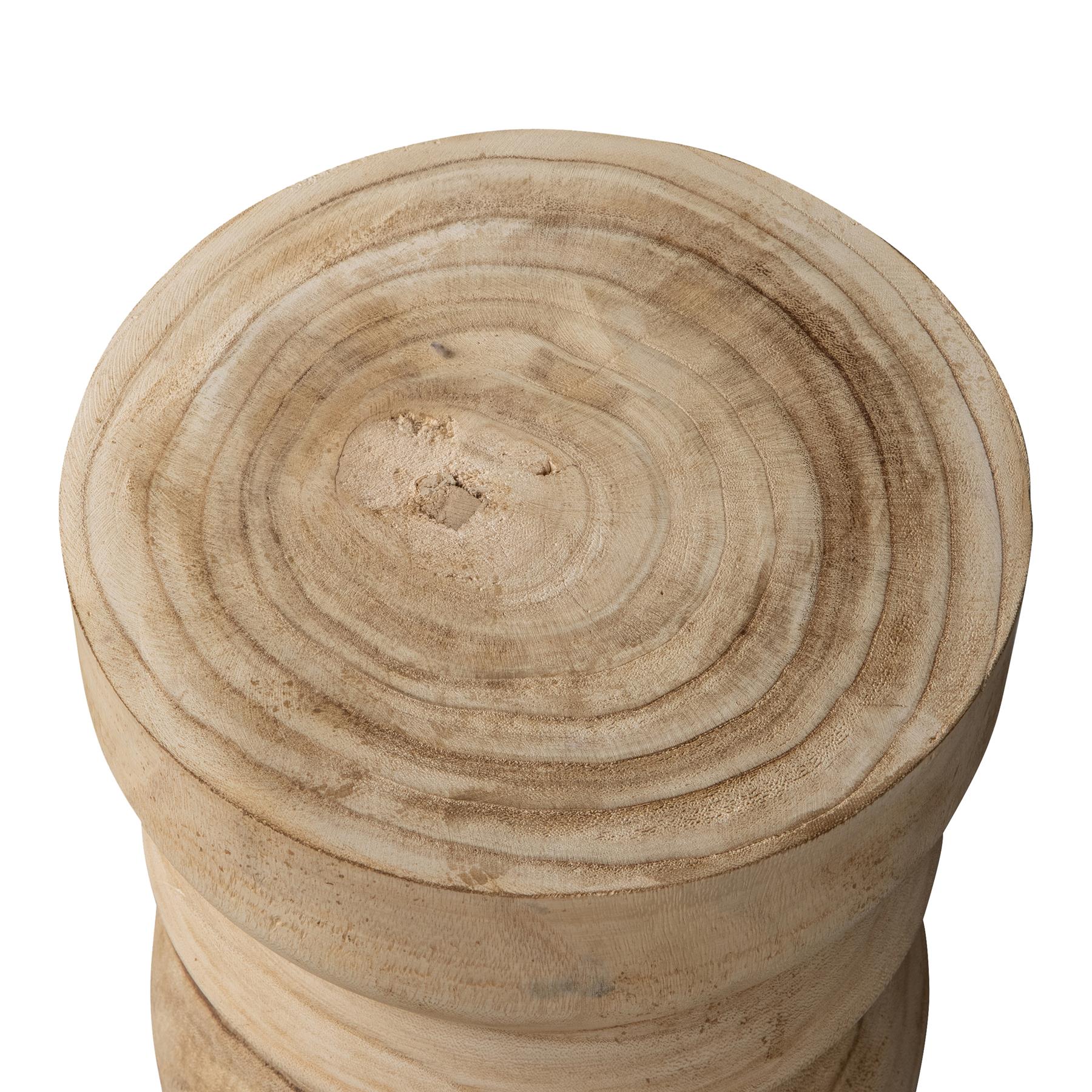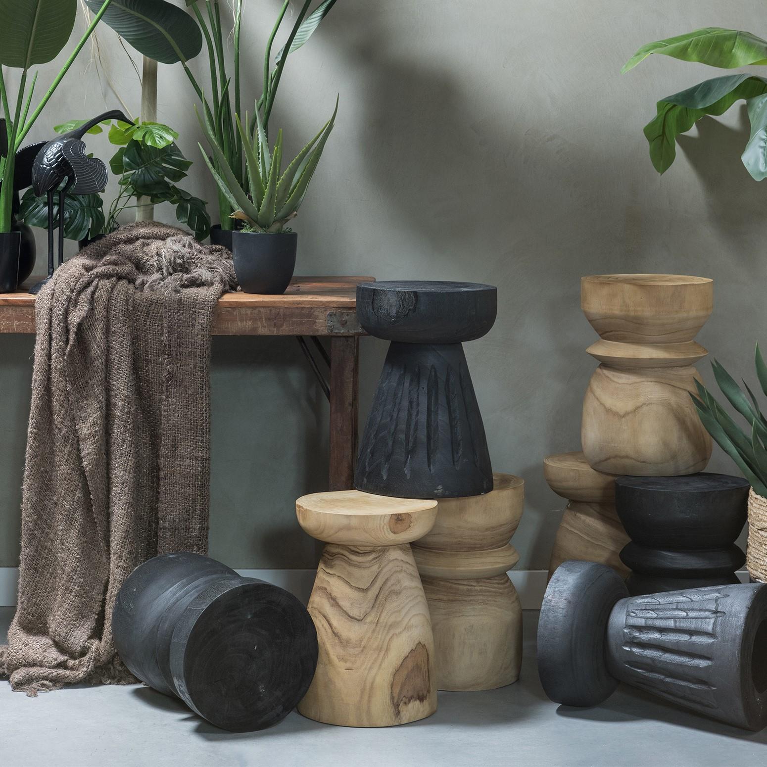 Natuurlijke en pure kruk Naturel paulowniahout Praktisch als tafeltje ? kruk H 40 x ?28 cm Deze Bikkel kruk is een verrassend item in het interieur! De kruk is afkomstig uit de collectie van het Nederlandse merk WOOOD. De kruk is gemaakt van paulowniahout, wat de snelst groeiende hardhout ter wereld is. Het paulowniahout staat bekend om haar knoestige kenmerken, scheuren en gaten in het hout kunnen voorkomen en geven deze Bikkel zijn robuuste karakter. Plaats bij harde vloeren viltglijders onder de kruk. Dit voorkomt beschadigingen aan de vloer.