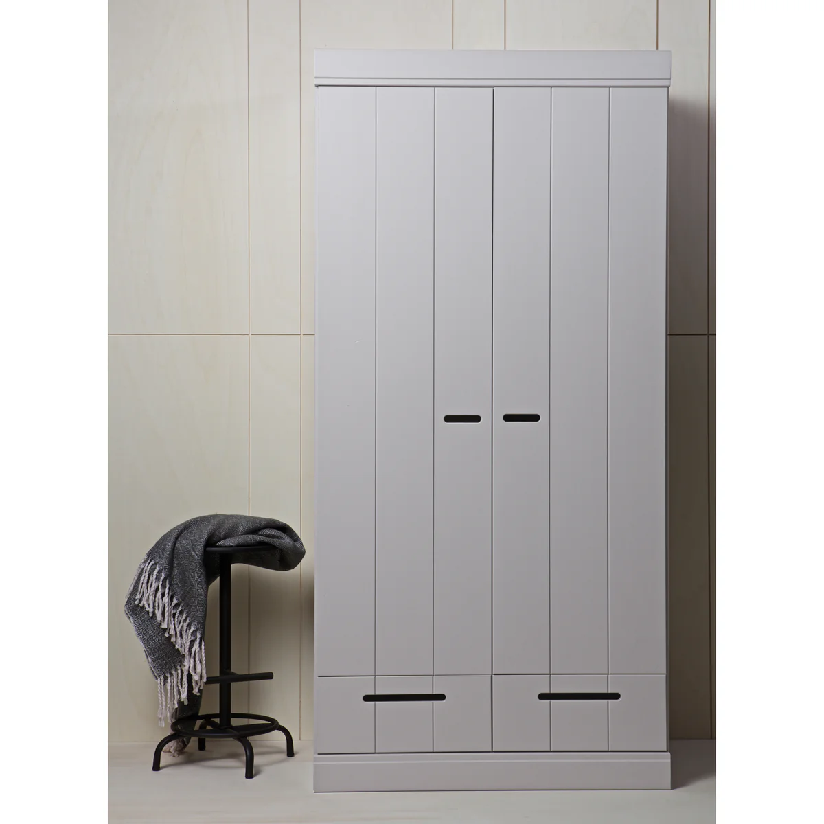 WOOOD kast Connect – 2-deurs met lade en strokendeur in betongrijs is een stijlvolle en praktische toevoeging aan je interieur. De stoere betongrijze kleur en de karaktervolle strokendeur zorgen voor een moderne, rustige uitstraling die perfect past in een eigentijdse slaapkamer, hal of werkkamer. Je creëert een overzichtelijke opbergplek die naadloos aansluit bij jouw woonstijl.