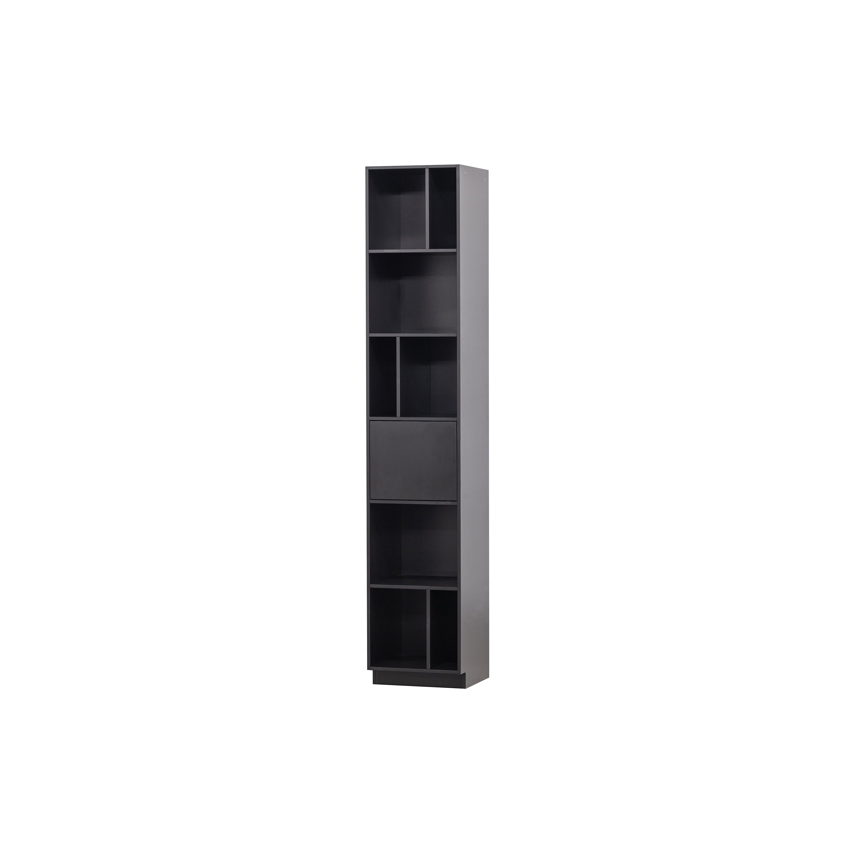 De Finca open vakkenkast is een waar pronkstuk in de woonruimte. De open vakken zijn speels ingedeeld voor het presenteren van jouw mooiste woondecoratie. Het deurtje houdt nog eens een ruime opbergruimte uit het zicht. De vakken hebben verschillende breedtematen en elk een diepte van 37 cm. De onderrand van de vakkenkast laat 7 cm ruimte over aan de voorzijde, hierdoor lijkt het meubel te zweven.
